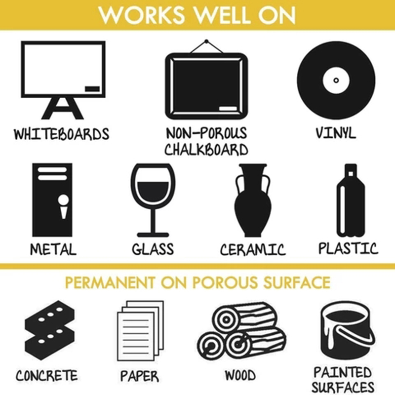 3. Работает на большинстве поверхностей, таких как бумага, камень, пластик, очки, керамика, металл, дерево и многое другое. Высокопигментные маркеры позволяют вам красиво раскрашивать поверхность.