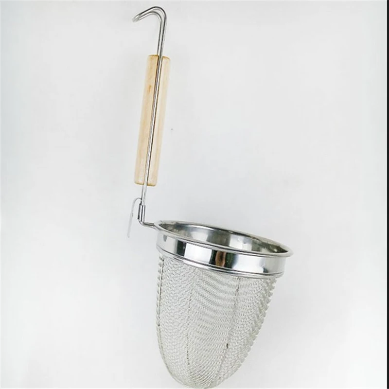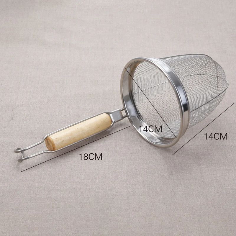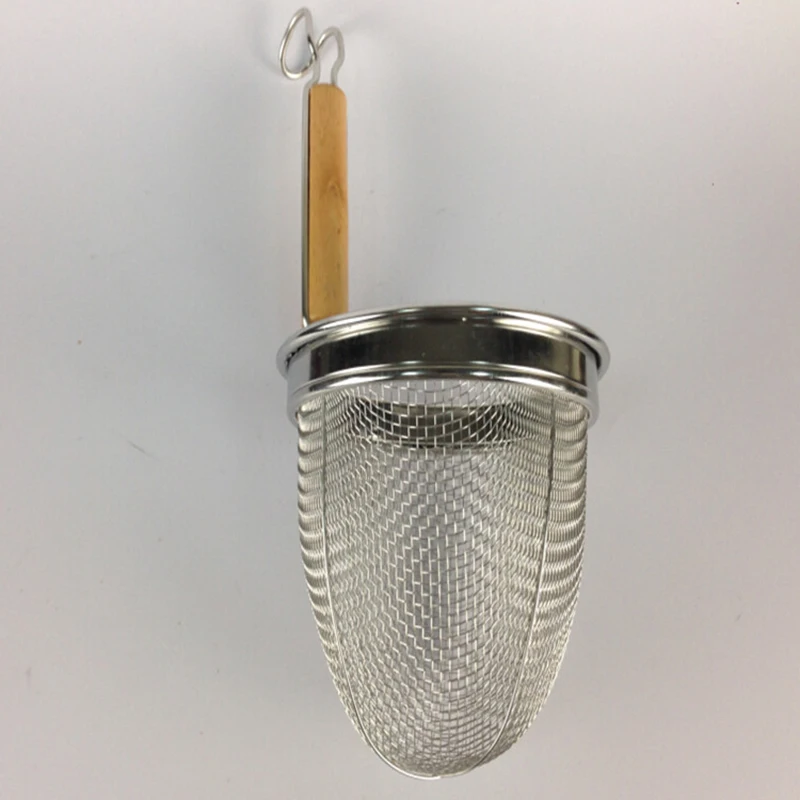 Изготовлен из сетки из нержавеющей стали с прочной проволочной рамой; Деревянная ручка с 2 крючками удобно висит на горшке во время использования и легко хранится