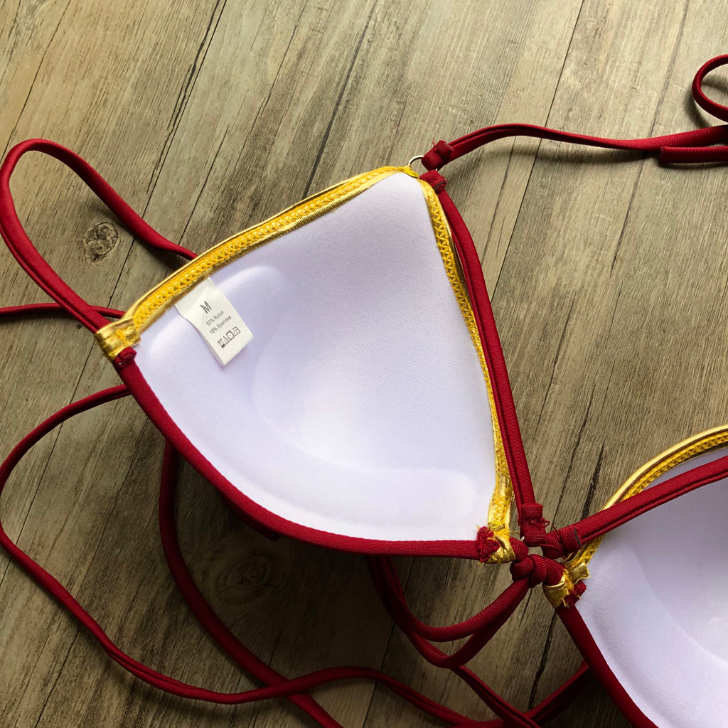 3.Шнуровка сзади. Традиционный треугольный крой, меньше покрытия, подчеркивает ваш силуэт.Ноги с высоким вырезом делают ваши ноги длиннее.