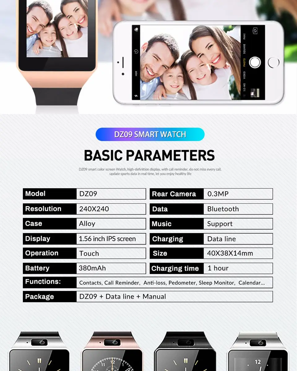 Смарт-часы DZ09 с поддержкой Bluetooth и TF-SIM-камерой, для мужчин и женщин, спортивные наручные часы для телефонов Samsung, Huawei, Xiaomi, Android, новинка 2019