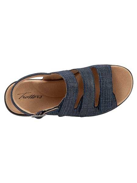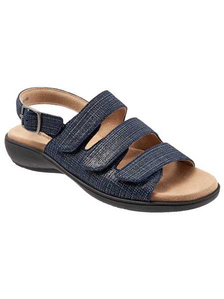 Сандалии женские синие кожаные на липучках спереди и сзади для регулировки полноты. Текстильная стелька. Большая полнота W. Trotters, США.