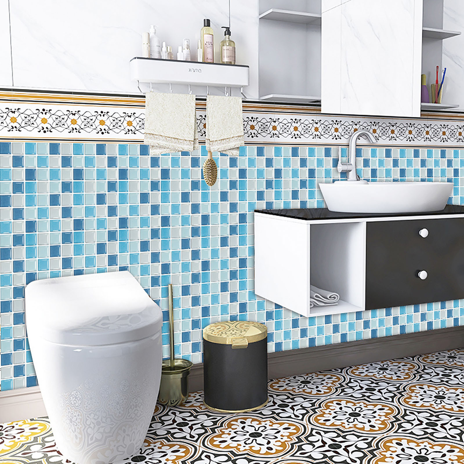 5. Это легко сделать самостоятельно-приклеить к плитке splash plate в кухне или ванной, самоклеющаяся, устойчивая адгезия, можно хорошо прошить и установить в соответствии с размером, можно согнуть на угол, без затирки, клея, беспорядка, специальных инструментов, Опыт не требуется.