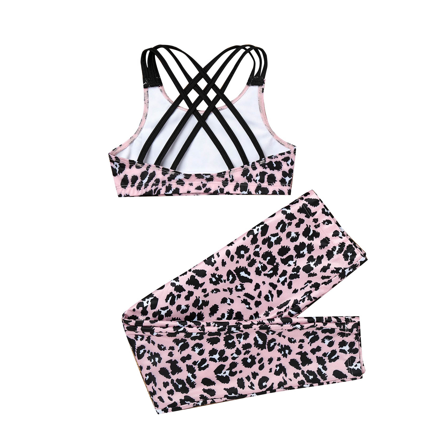 Детский спортивный костюм из 2 предметов спортивная одежда с леопардовым принтом для девочек спортивный костюм для занятий йогой укороченный топ без рукавов + штаны, Леггинсы спортивные брюки спортивная одежда