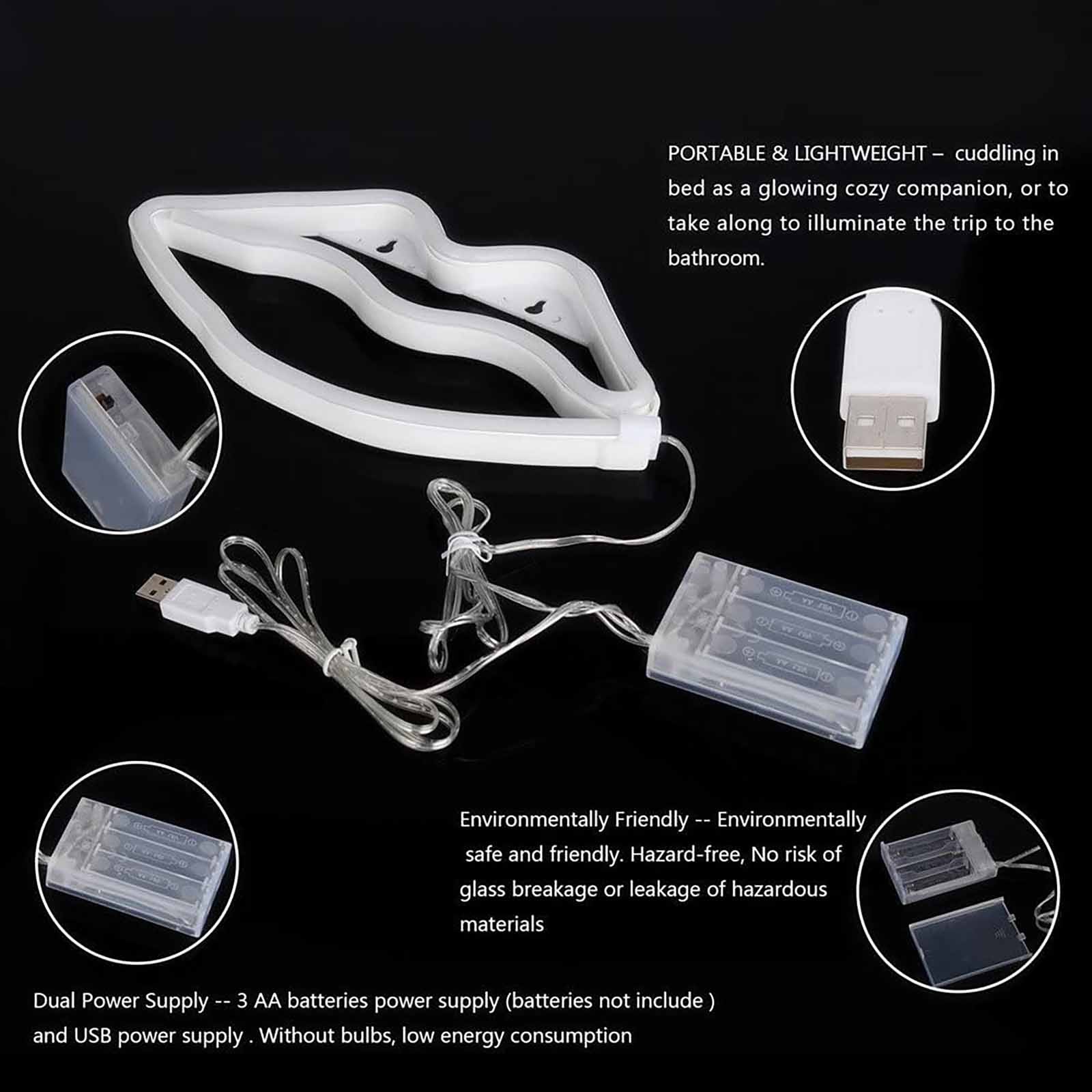 Светодиодный неоновый Ночной светильник, светильник для губ, украшение на стену, рождественская Свадьба Характеристика: Чудесное освещение для украшения спальни. Неоновые огни имеют низкое напряжение, что означает, что вы можете поместить тест-полосу почти в любом месте, не беспокоясь о том, что она становится слишком горячей. Идеальный подарок для коллег, друзей И родственников на Рождество, Новый Год, День Святого Валентина, День рождения, Вечеринки, выступления, торжественные мероприятия и другие мероприятия Питание от USB кабеля (в комплекте) или3 батарейки АА(Не входит в посылка). Описание: Материал: ПВХ + пластик Светильник источник света: светодиодный Цвет источника: Красный светильник Режим переключения: переключатель Напряжение: 5 В постоянного тока Стиль: форма губ Срок службы: 50000 часов Источник питания: 3 Питание от батареи типа ААА питания (не входит в комплект) / USB Размеры: 10,4x5,5x0,9 дюйма/27,5x15x2,2 см