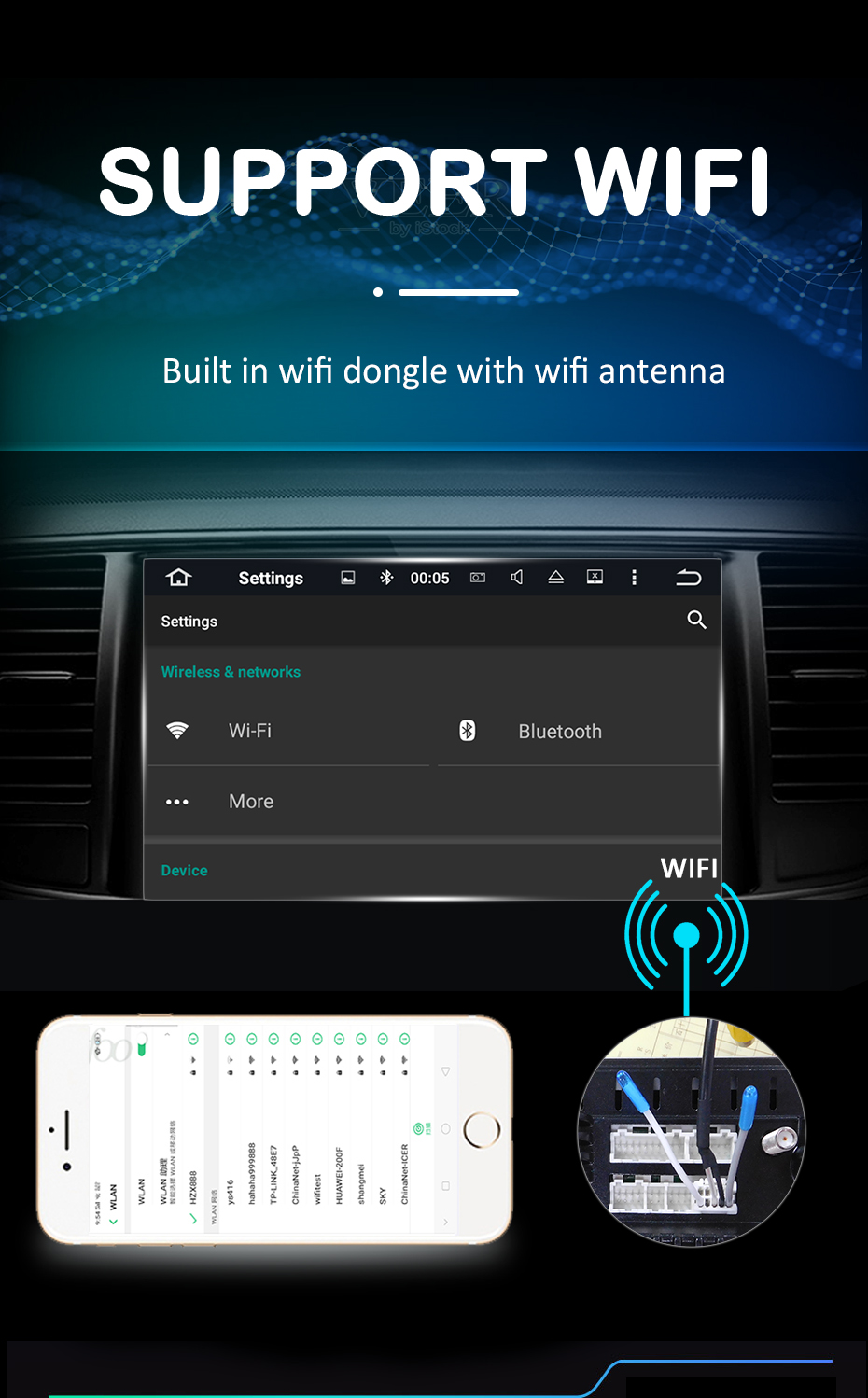 WIFI Радио имеет встроенную функцию Wi-Fi, и вам нужно затянуть антенну перед использованием. (Напоминание: при звонке, если вы слышите много шума, пожалуйста, проверьте антенну WiFi, она может быть свободной) Wi-Fi радио не может подключаться к домашнему wifi. Подключите его к мобильный телефон wifi через точку доступа. Это лучший выбор.