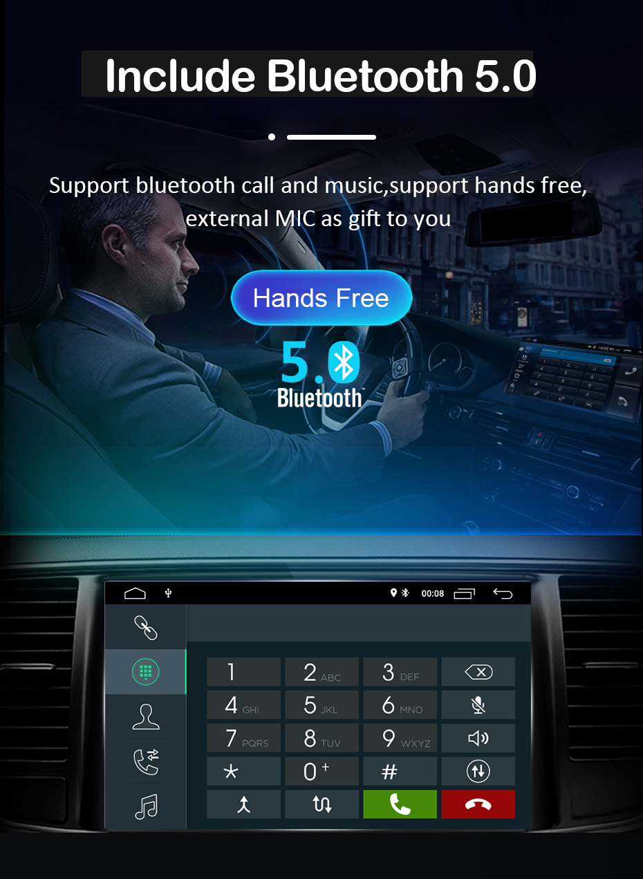 Поддержка Bluetooth Это радио включает в себя встроенную функцию bluetooth, вы можете воспроизводить музыку bluetooth или звонки без рук, мы предоставим вам 1 внешний микрофон в подарок, вы можете использовать функцию «свободные руки», ощущение было бы очень классным.