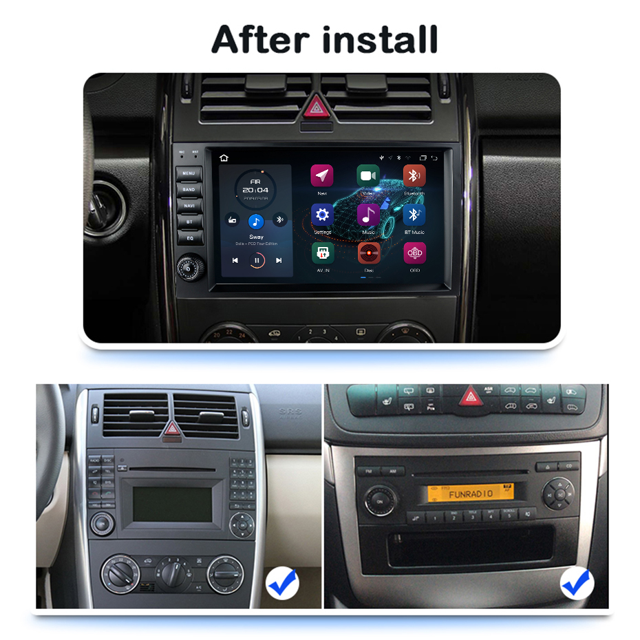 После установки Синяя марка автомобиля может установить наше радио. Красный знак размер радио автомобиля отличается от нашего продукта и не может быть установлен. Если вы все еще не уверены, пожалуйста, оставьте сообщение нашей службе поддержки клиентов, и они помогут вам.