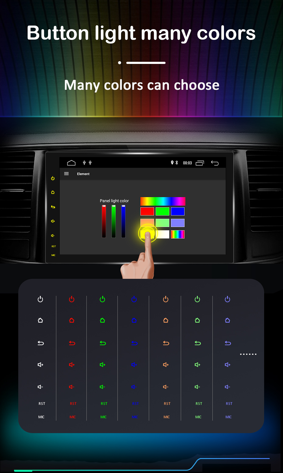 Много цветов кнопочный светильник У вас есть много цветов на радио кнопки света. Вы можете выбрать понравившийся цвет. Вы также можете выбрать функцию «цветной свет», она покажет семь цветов в свою очередь.