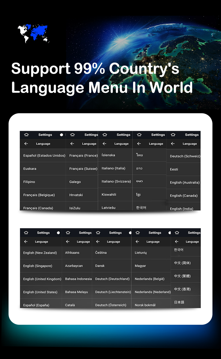 Язык Это радио поддерживает язык 99% страны. В зависимости от нашего опыта, Радио поддерживает все наши языки Покупателя до сих пор. Поэтому вы не беспокоитесь о языковом меню.