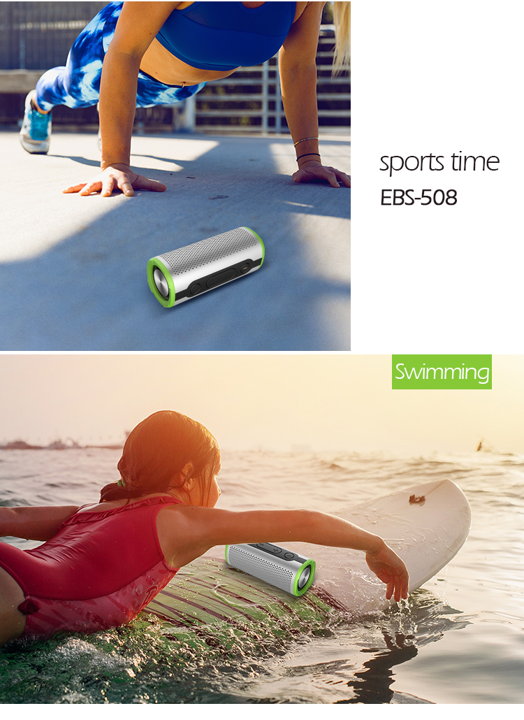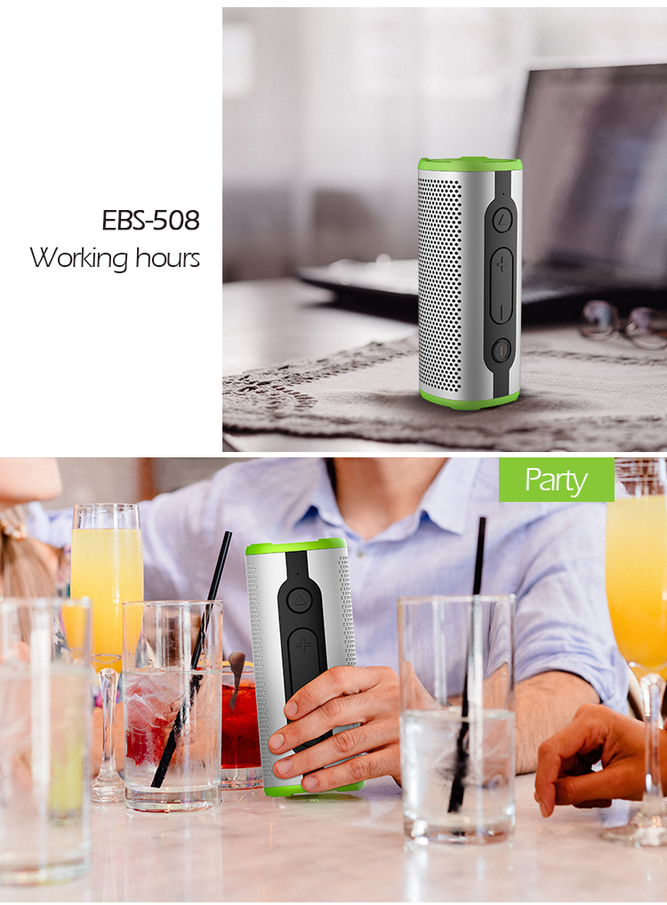 Модель изделия: EBS-508 Размер изделия: длина, ширина и высота: 173*70*70 мм Протокол Bluetooth: A2DP, AVRCP, HFP, HSP Решение Bluetooth/версия: действия 2815/4,2 версия Размер динамика: 45 мм Внутренний Магнитный * 2 (Неодимовый Железный бор внутренний магнитный) + 62 мм двойная басовая диафрагма Характеристики динамика: 4Ω/5 Вт * 2 Частотная характеристика: 65 Гц-18 кГц Искажение: ≤ 0.20% до 0.10% (1 кГц, 1 Вт) Отношение сигнал-шум: ≥ 72 дБ до 78 дБ Уровень шума ≤ 0,6мв до 1,0мв Номинальная мощность: 5 Вт * 2 6-8 Вт * 2 Вт + N ≤ 1% (1 кГц, 0 дБ) Расстояние передачи: от 10 до 15 метров Батарея Емкость: 2000 мА-ч/3,7 V (18650 Батарея) Номинальное напряжение: 5 В постоянного тока Зарядное напряжение/ток микро-usb 5В/1A Ток в режиме ожидания составляет менее 100μA Время зарядки: 3 ч Время игры: 18 ч Функция коробки: Да Вызов по Bluetooth: короткое нажатие кнопки воспроизведения для громкой связи Аудио линейный вход: 3,5 мм Интерфейс Разъем для зарядного устройства постоянного тока в micro USB 5V/1A Индикатор зарядки зеленый светильник включен, когда зарядка находится в процессе, и зеленый светильник выключен, когда зарядка завершена Индикатор Bluetooth синий светильник быстро мигает перед подключением и медленно мигает после подключения Линейный вход красный индикатор светильник включен Материал продукта и процесс ABS + резиновое масло + силиконовая кнопка Цвет изделия: черный/красный/зеленый/ Вес готовой машины: 453 г Аксессуары для упаковки: 1 упаковочная коробка, руководство, 1 зарядный кабель, LIN IN кабель