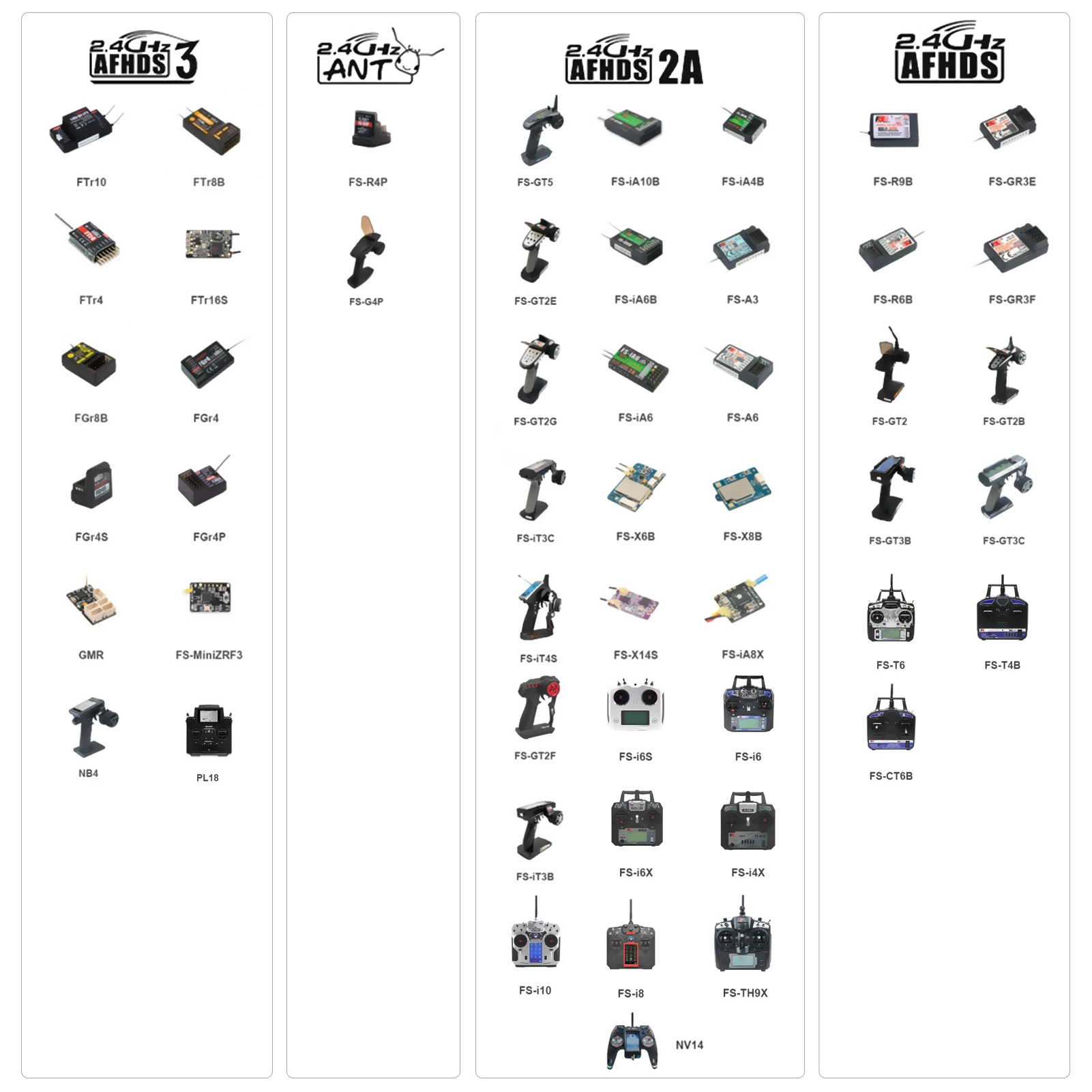-Приемник FTr16s FPV, FTr10 и все другие приемники AFHDS3 совместимы. Поддержка PPM и последовательной связи с failsafe также доступна в режиме PPM.