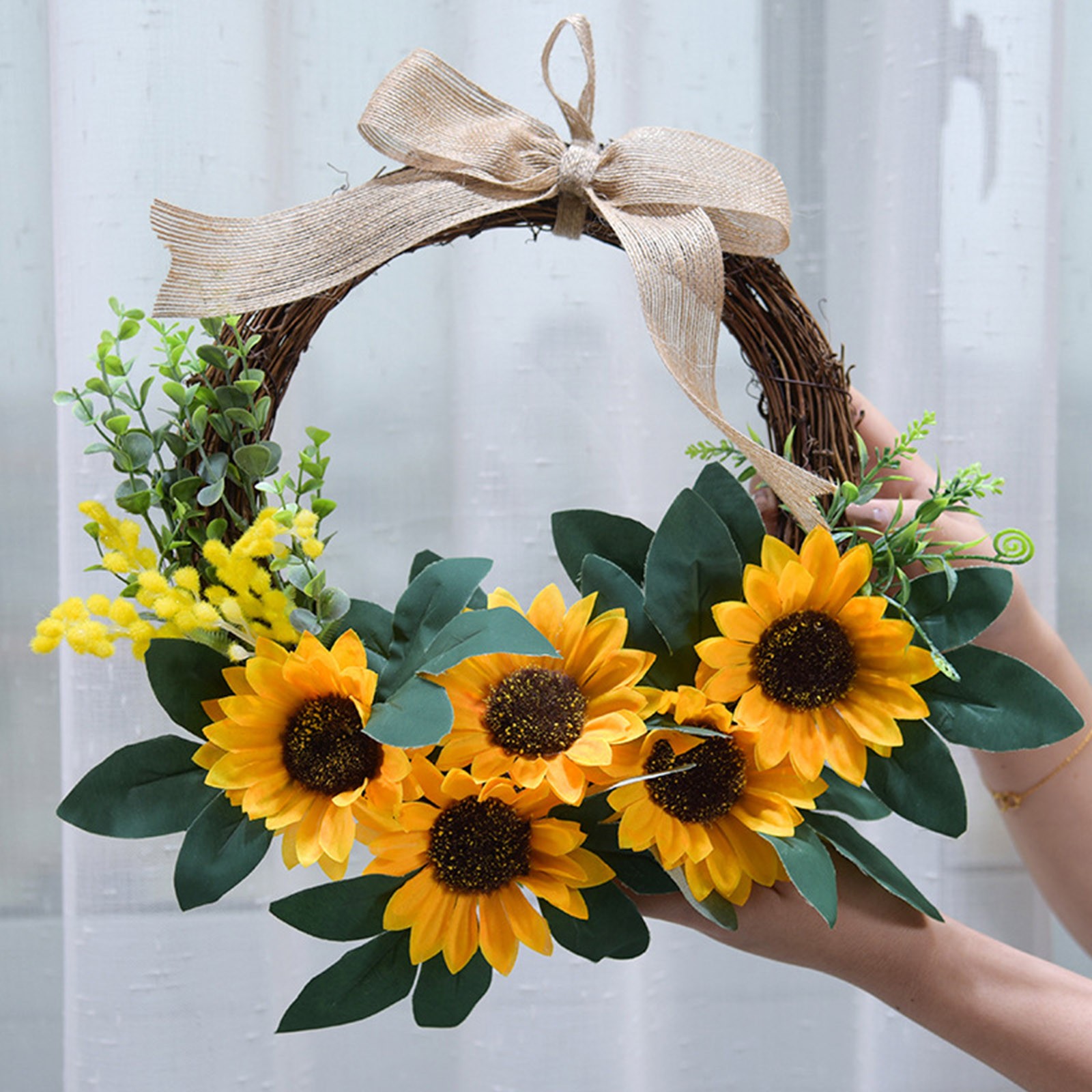 Искусственный венок из подсолнухов; Сезон весна-лето Украшения, для передней двери, спальни, настенные окна, семейные вечерние