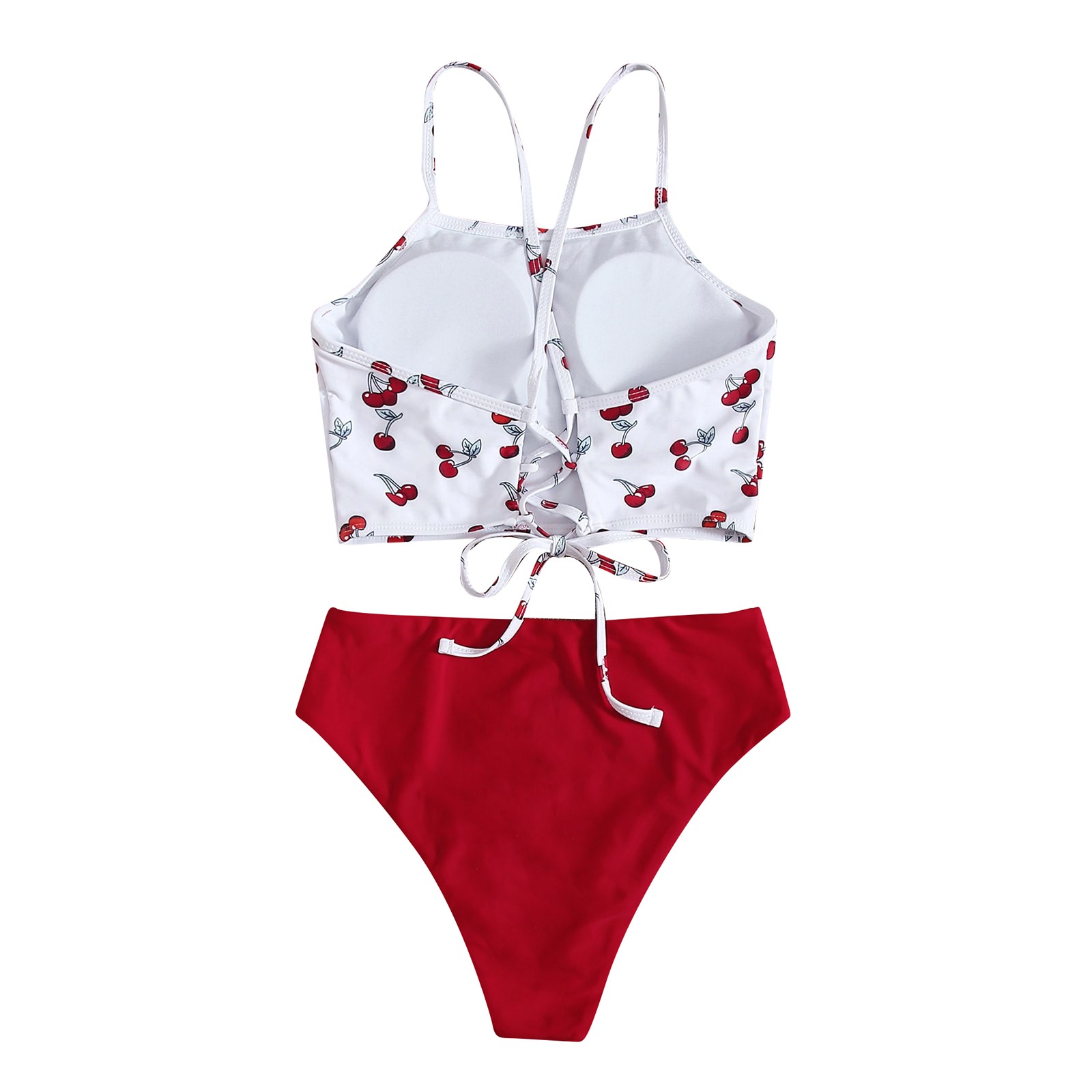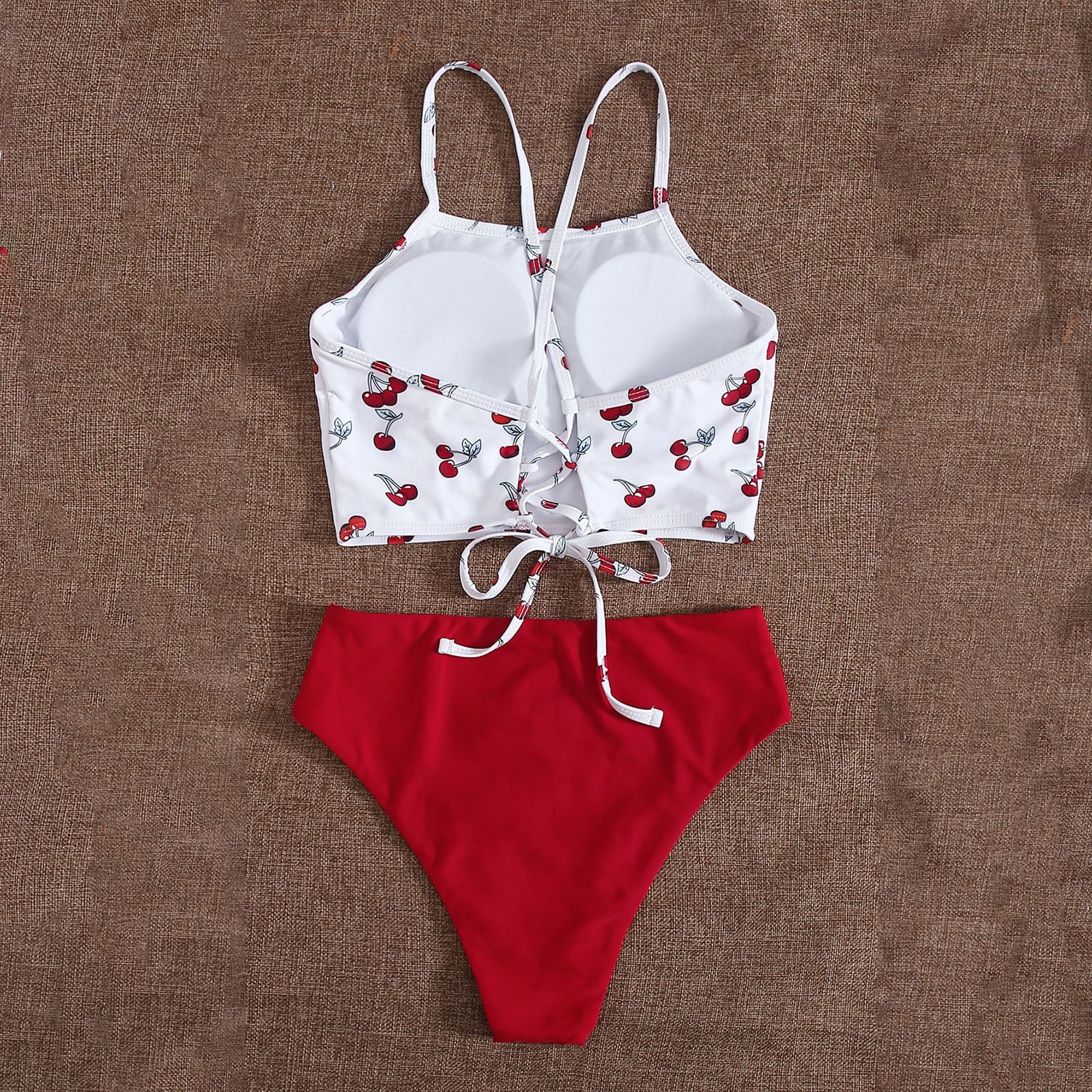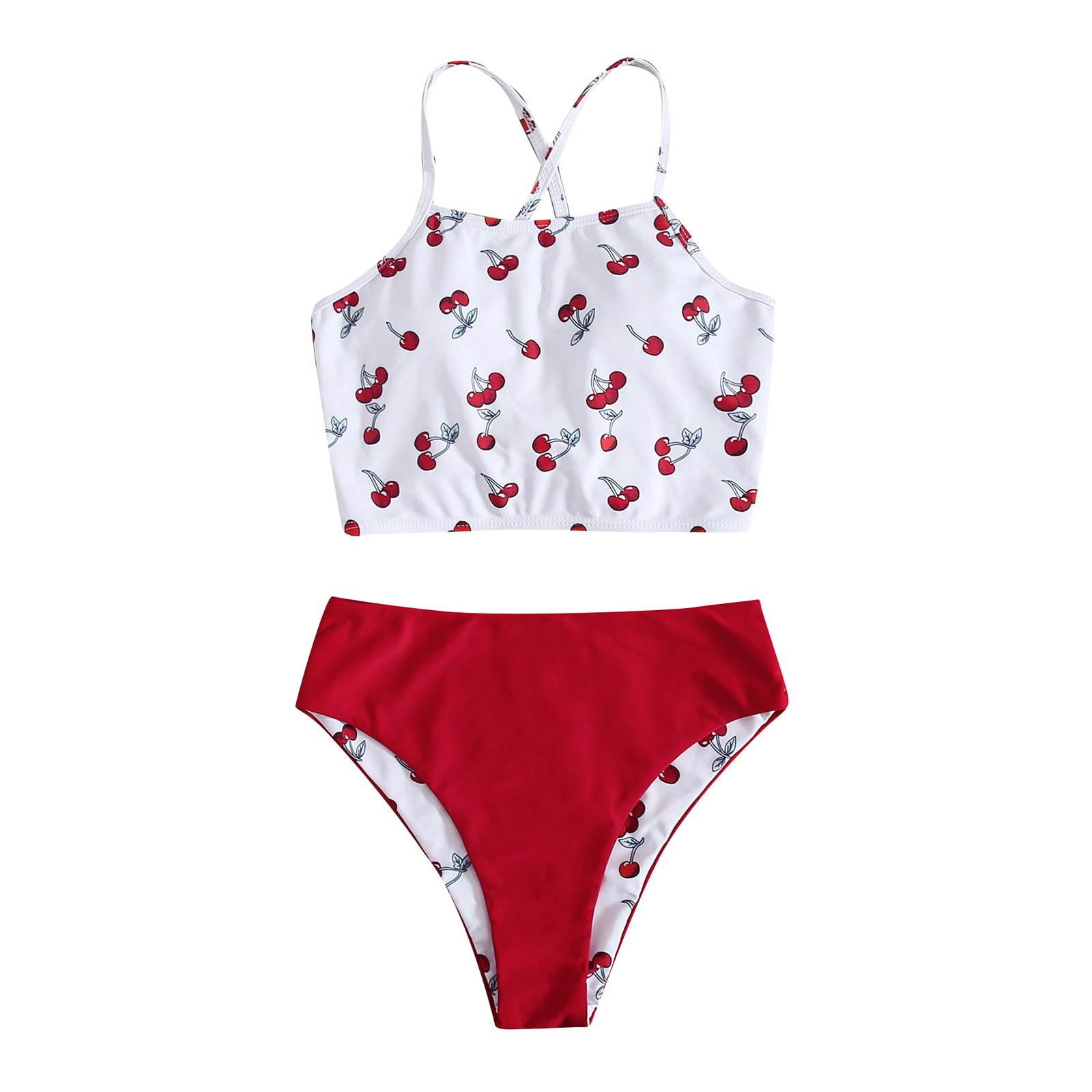Женская одеждаВишняБюстгальтер с пуш-ап и принтом, пляжный комплект бикини, купальник, пляжная одежда