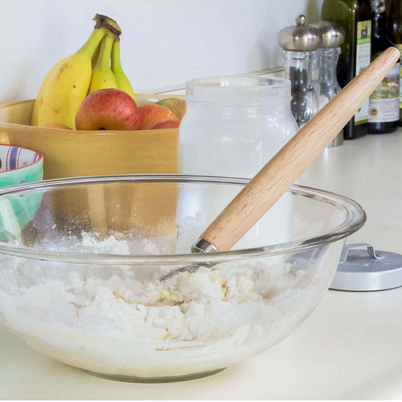 Изготовлено из высококачественной нержавеющей стали, поэтому не сгибается при приготовлении более плотного теста.