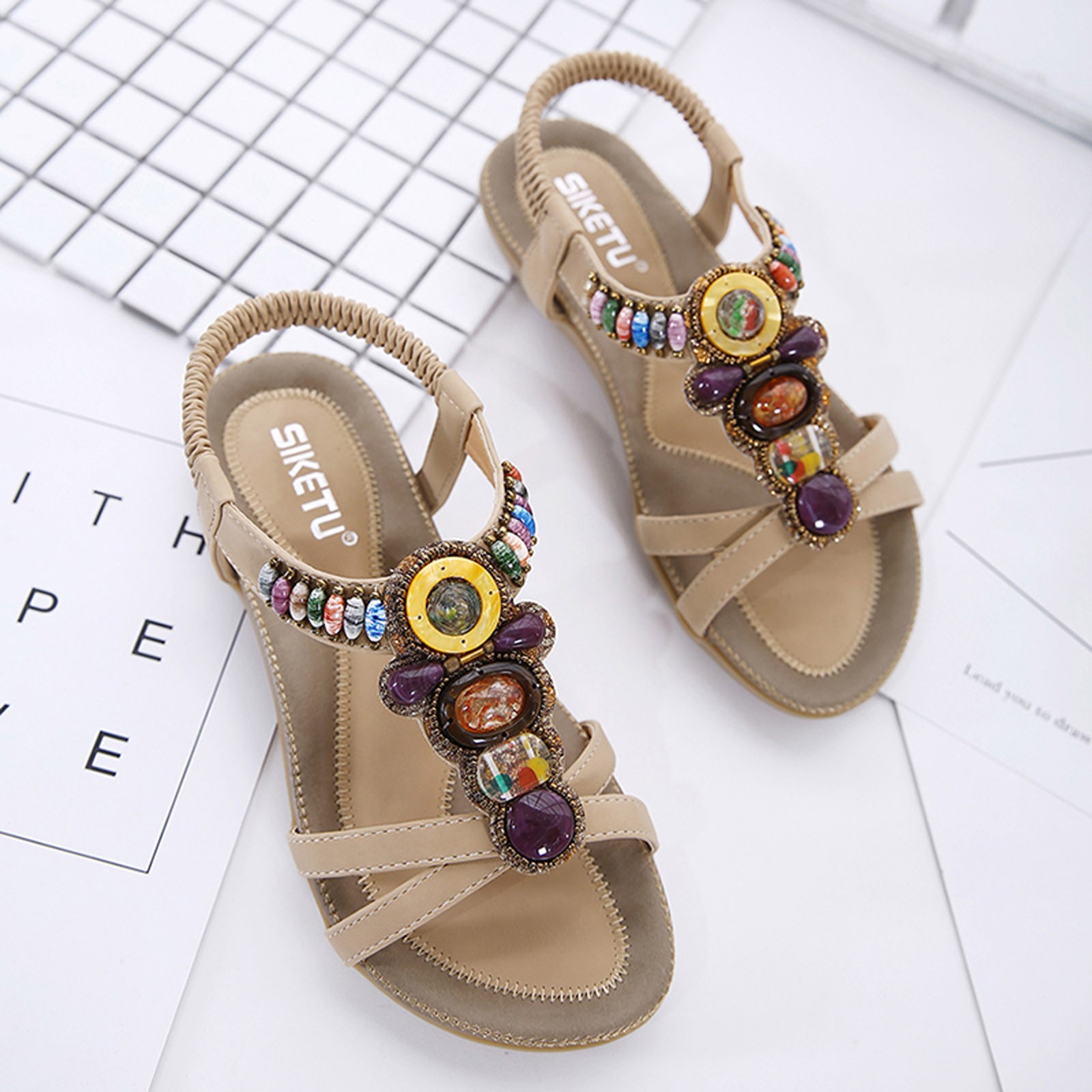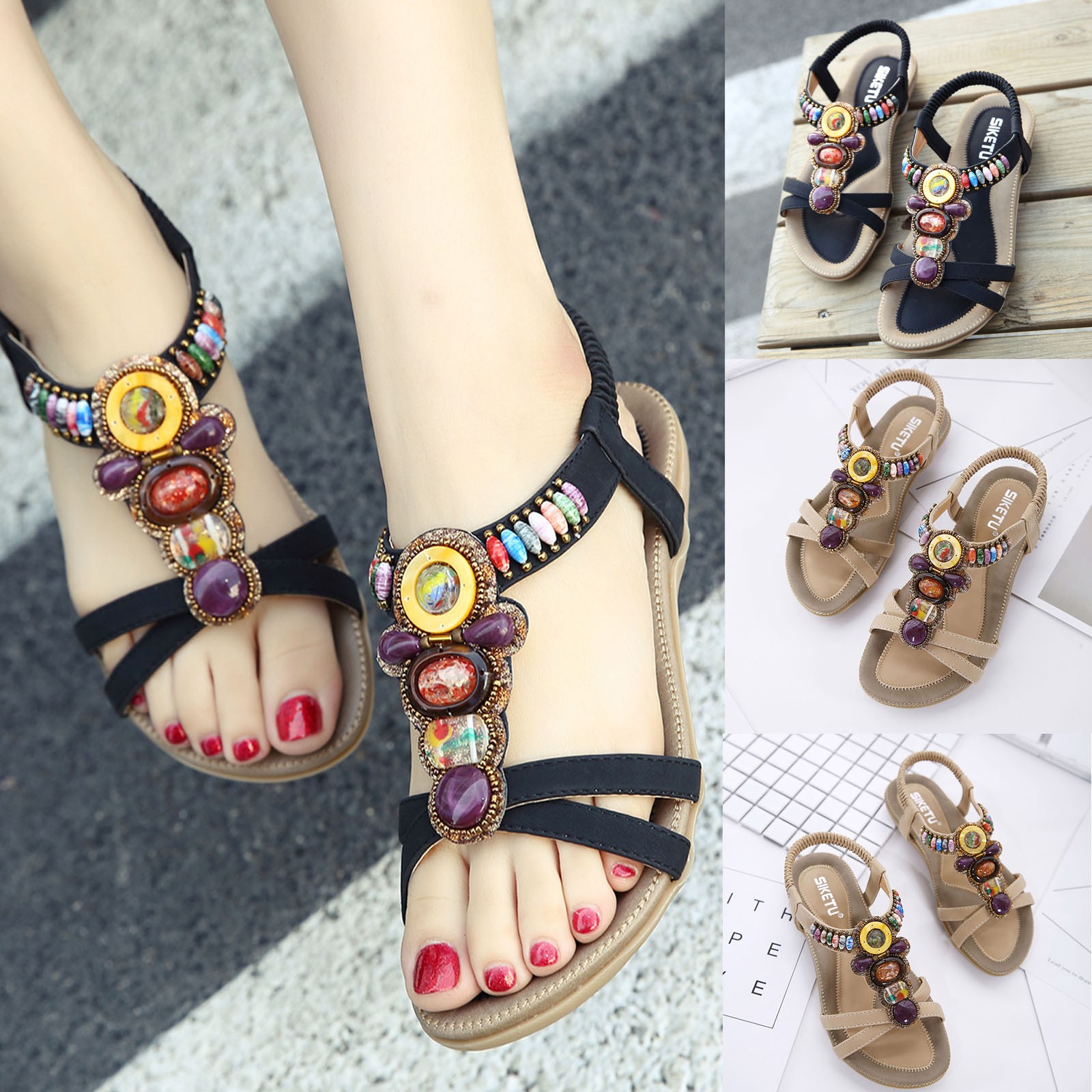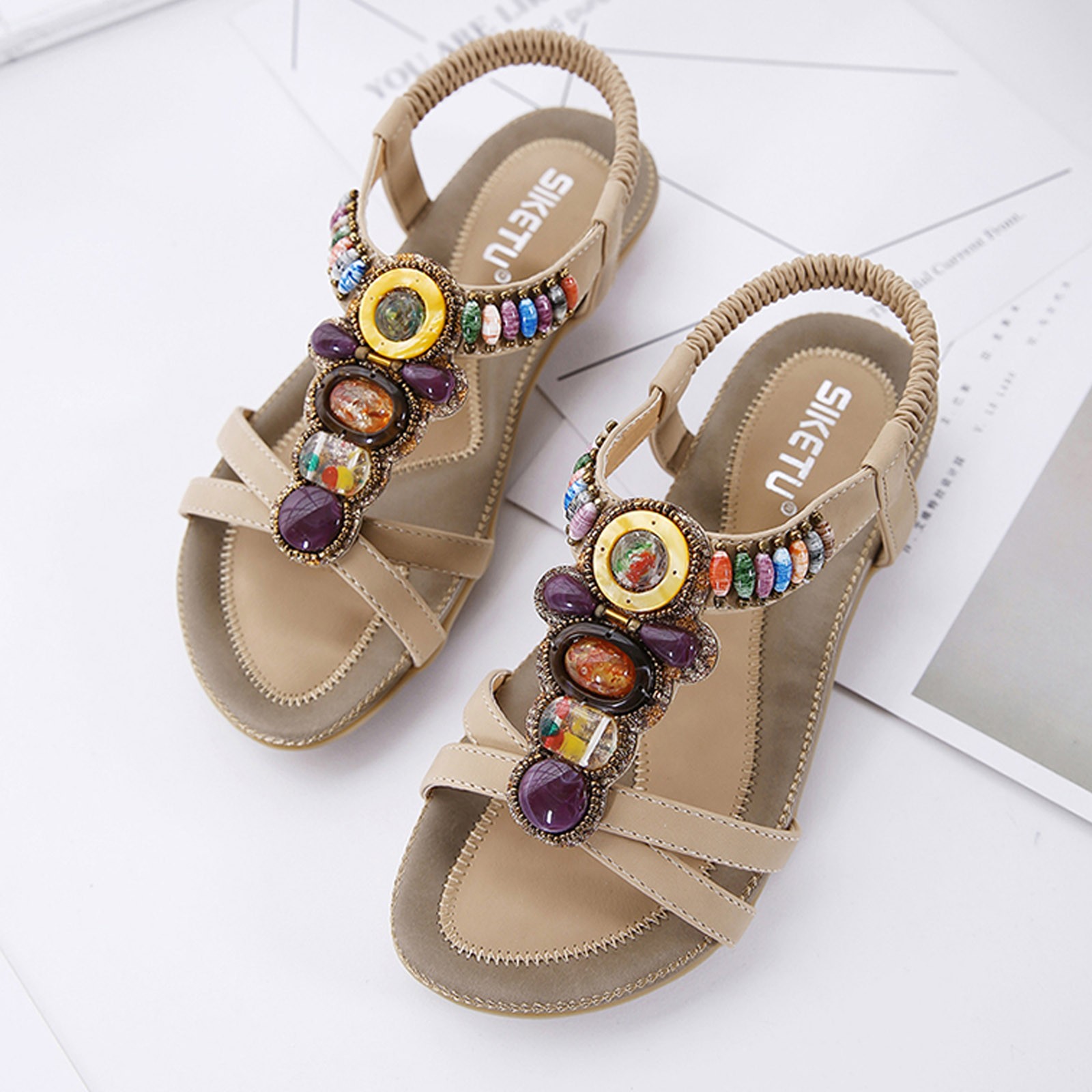 Модные женские летние пляжные дышащие сандалии на плоской подошве без застежки с открытым носком