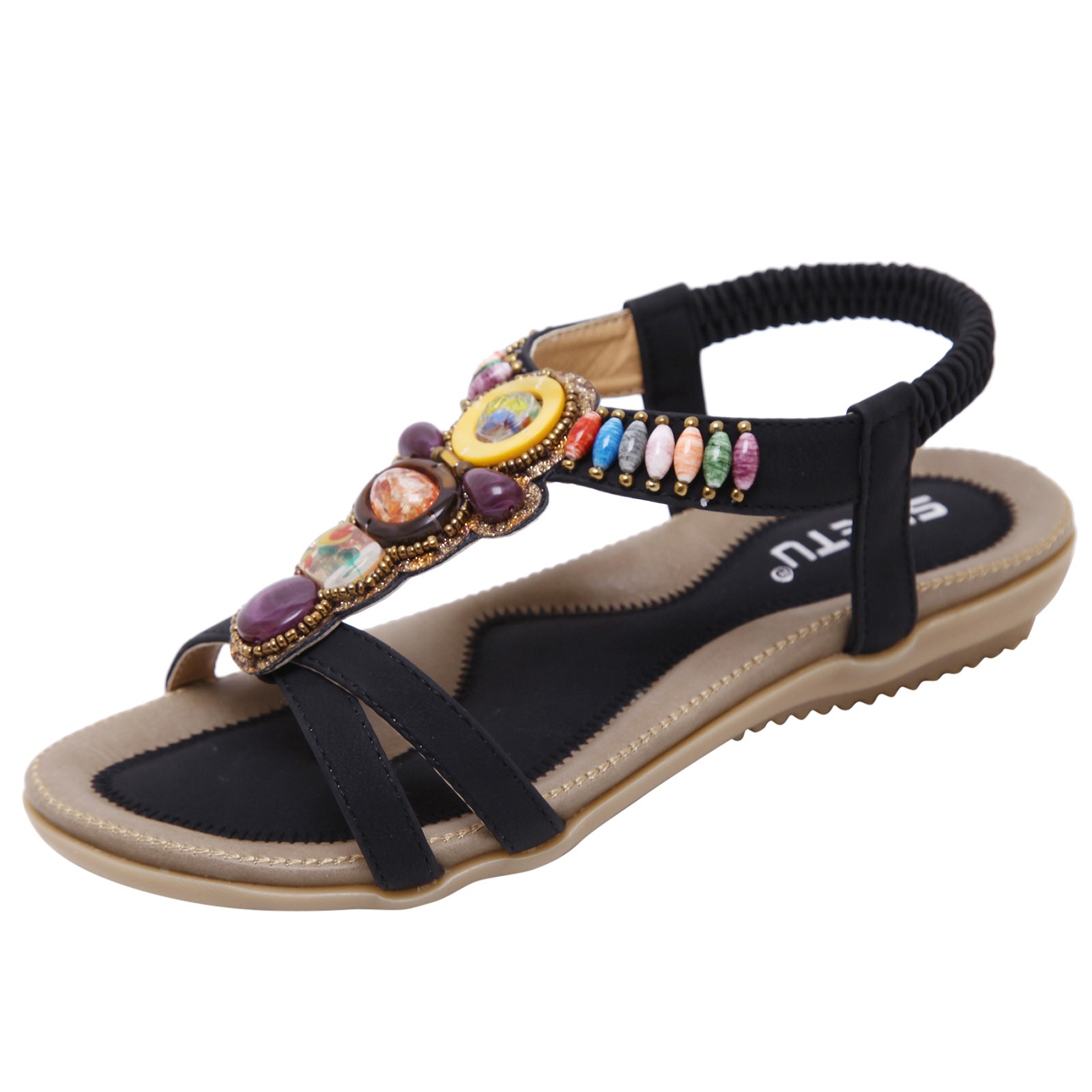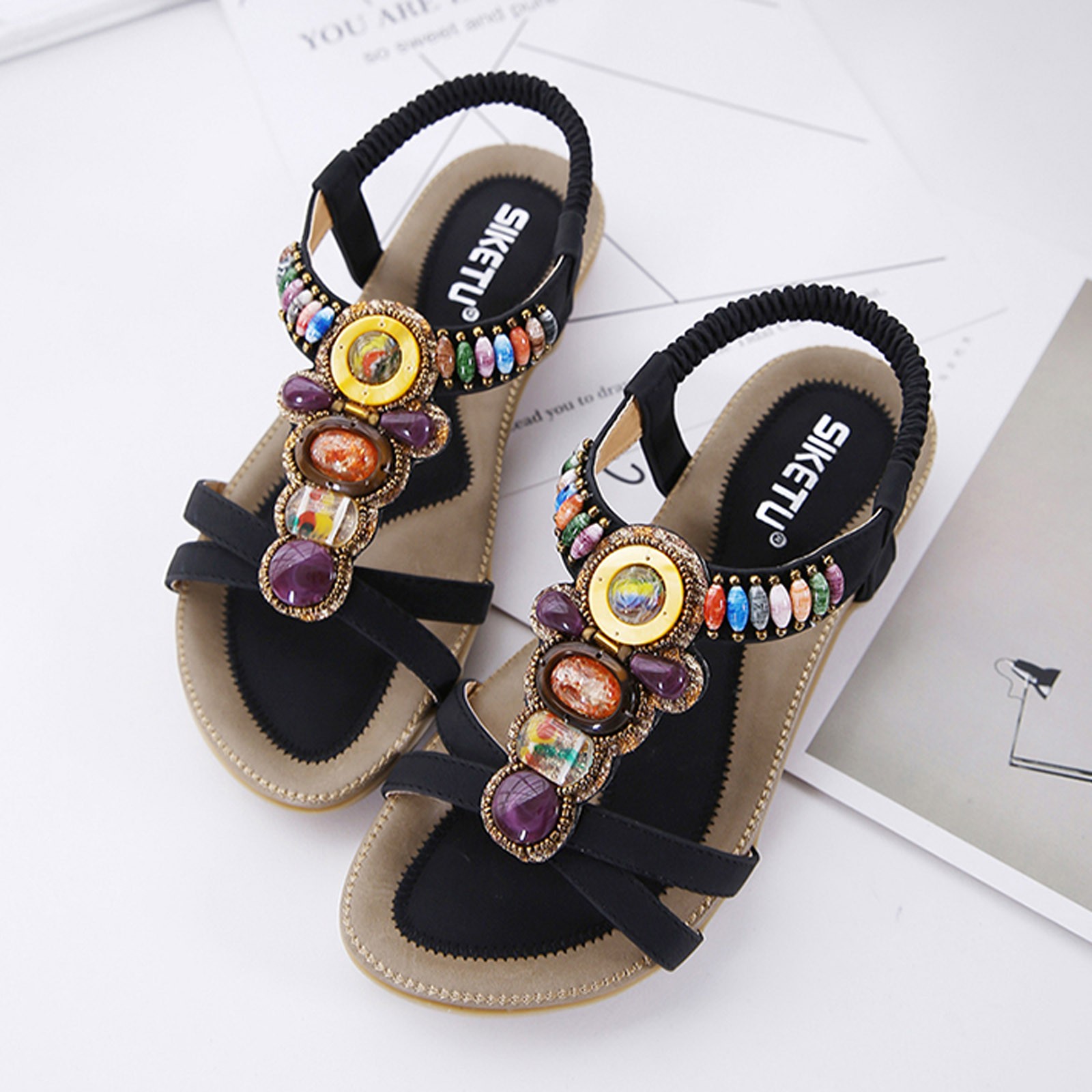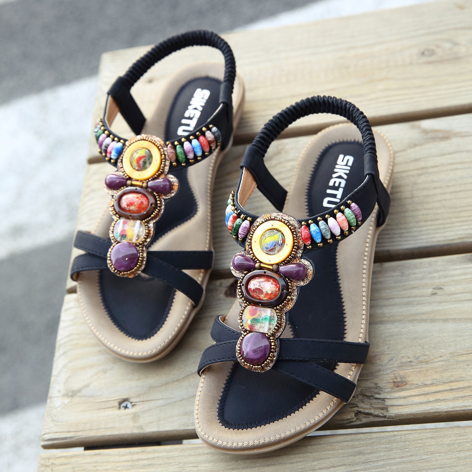 Модные женские летние пляжные дышащие сандалии на плоской подошве без застежки с открытым носком