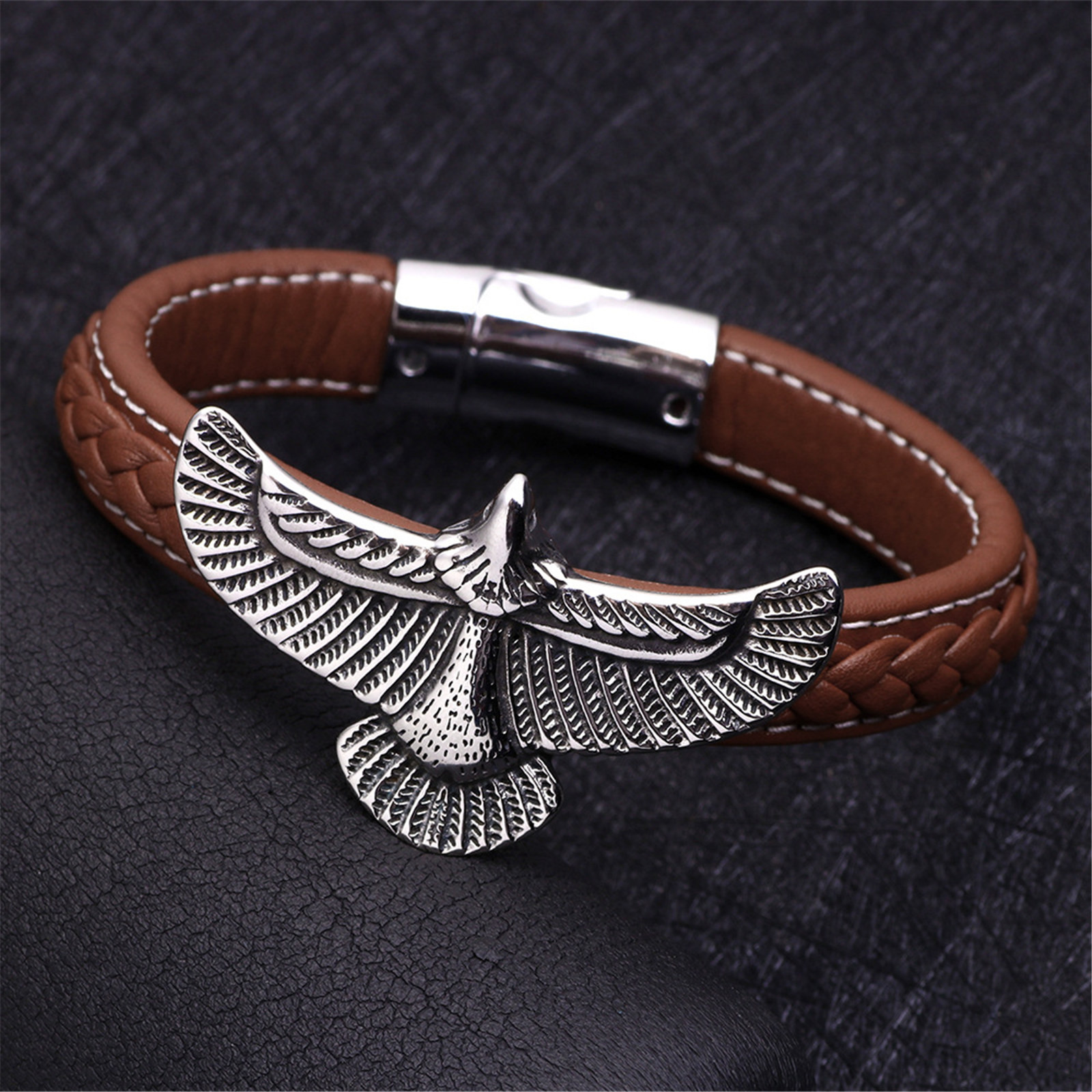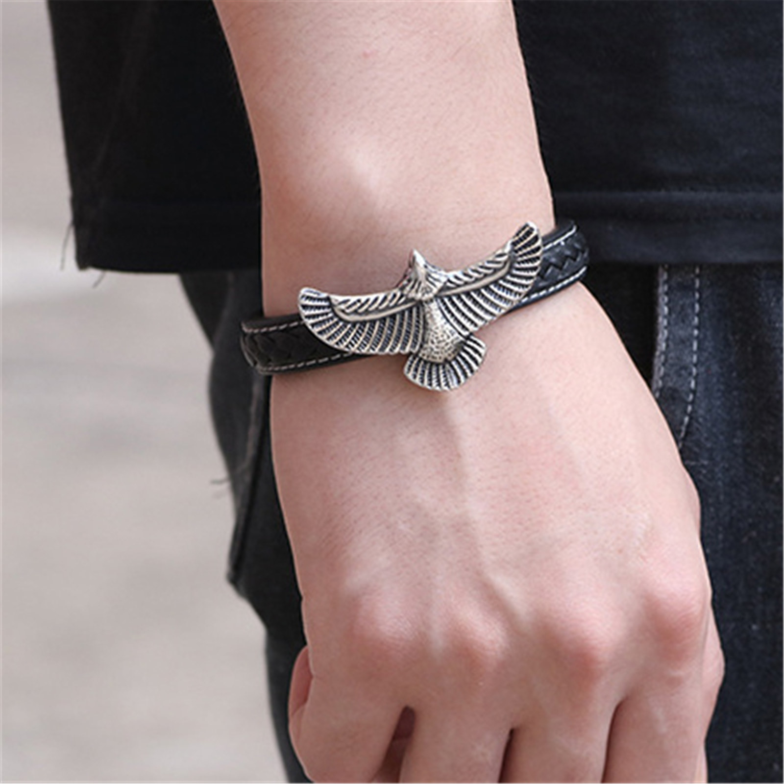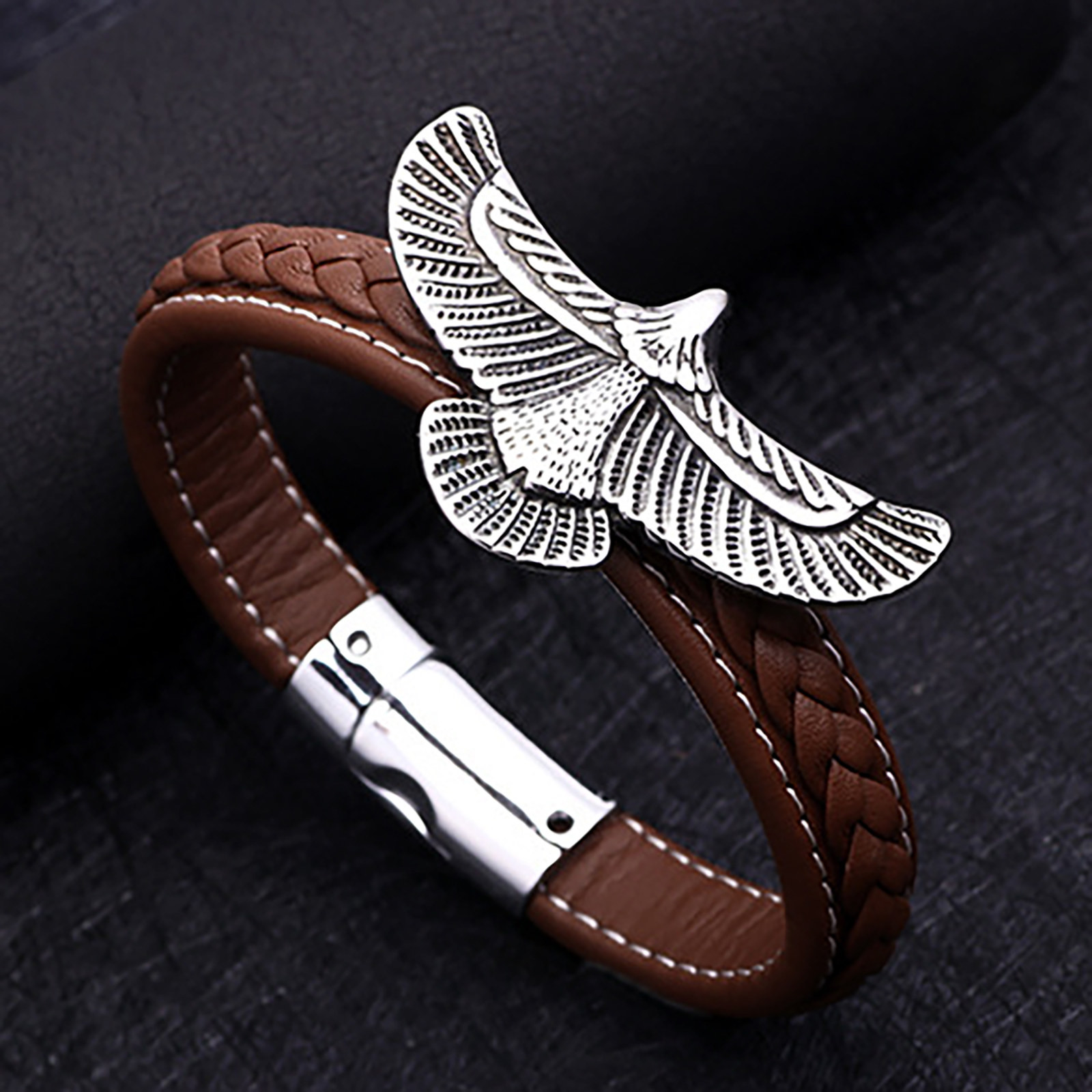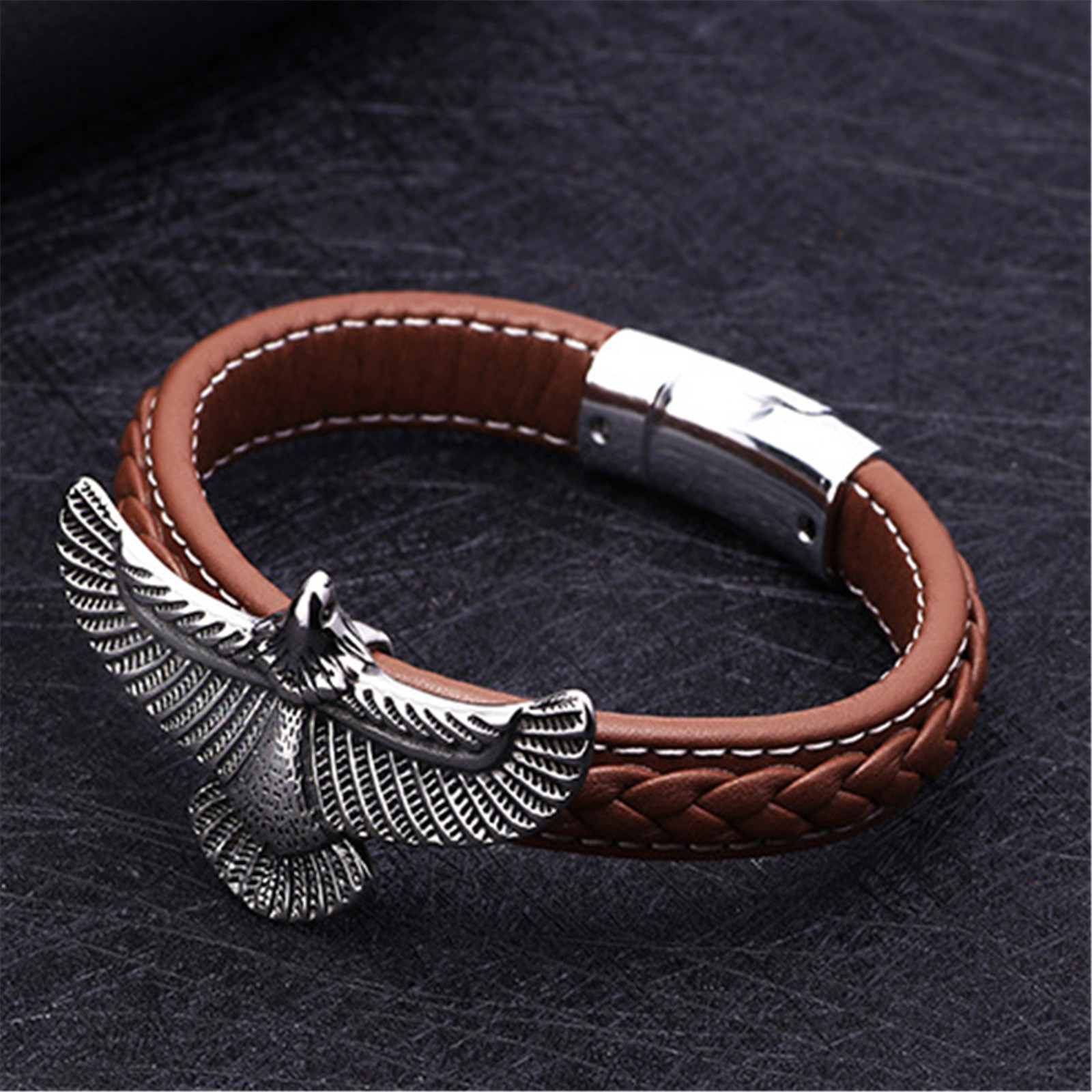 Браслет из воловьей кожи с орлом ручной работы браслет из нержавеющей стали для мужчин и женщин