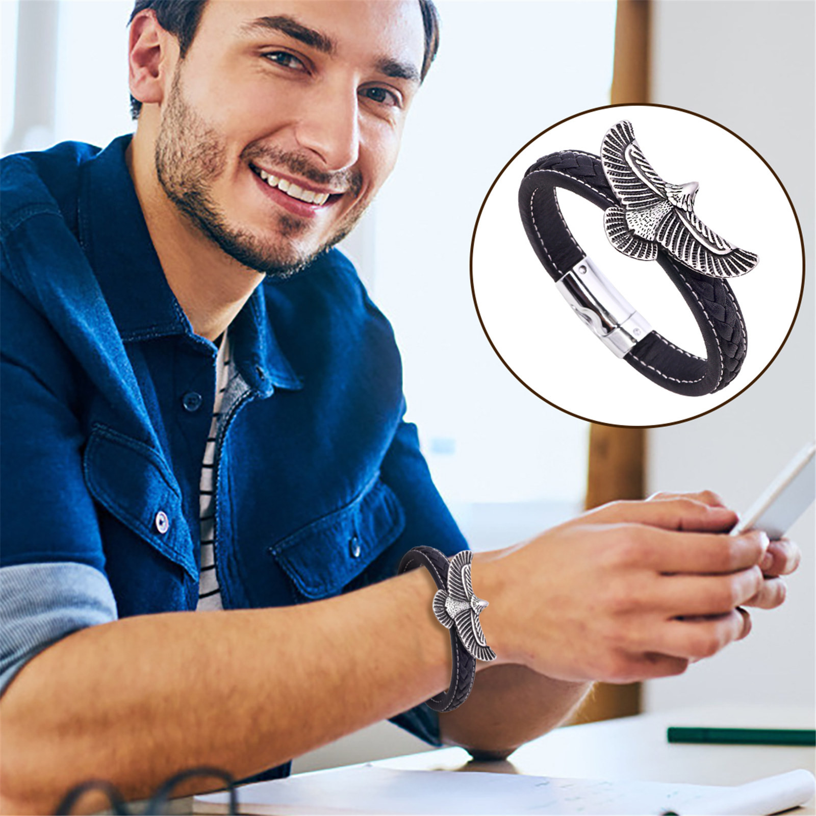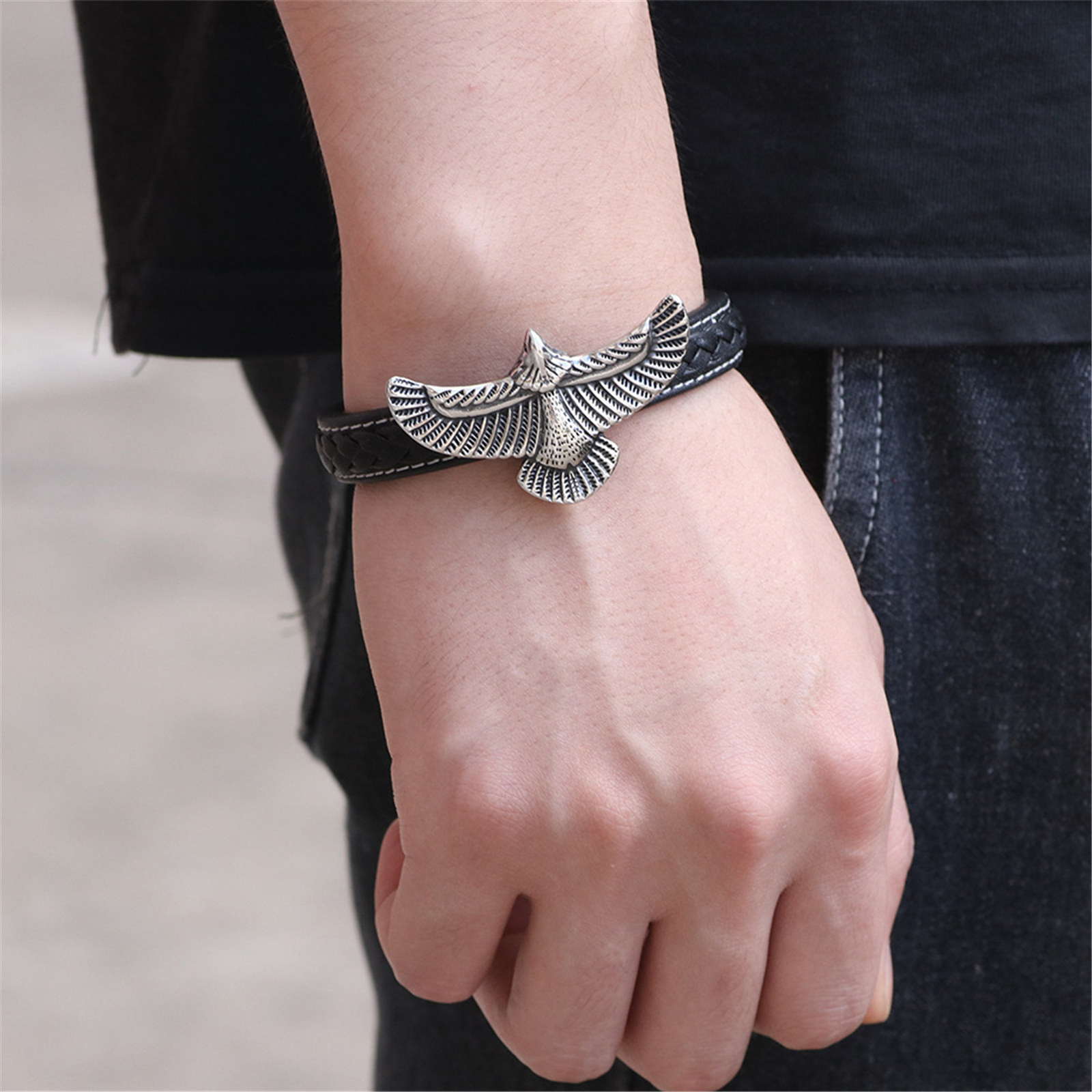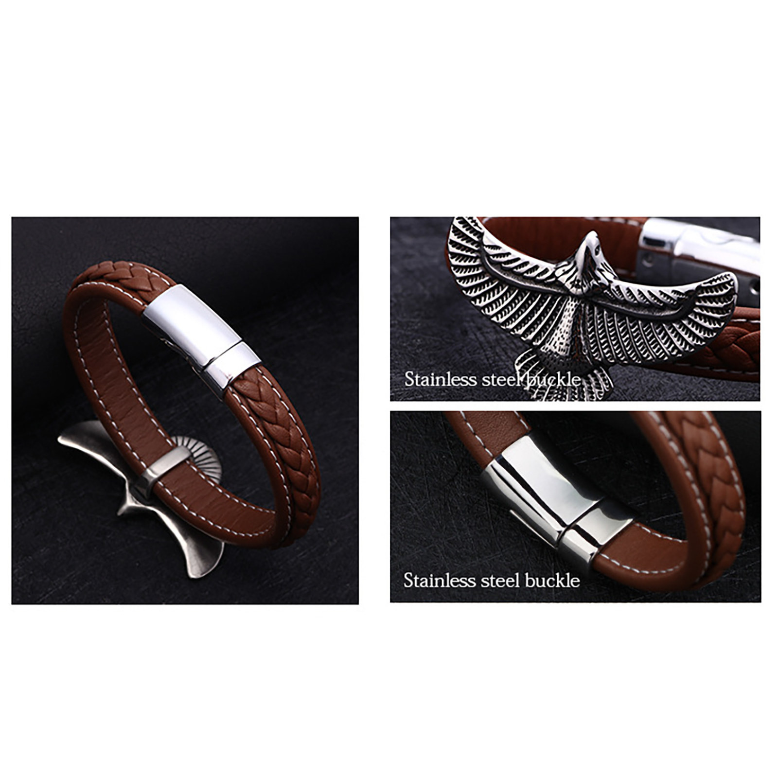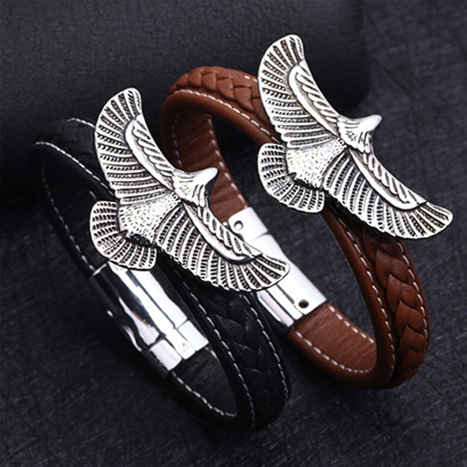 Браслет из воловьей кожи с орлом ручной работы браслет из нержавеющей стали для мужчин и женщин