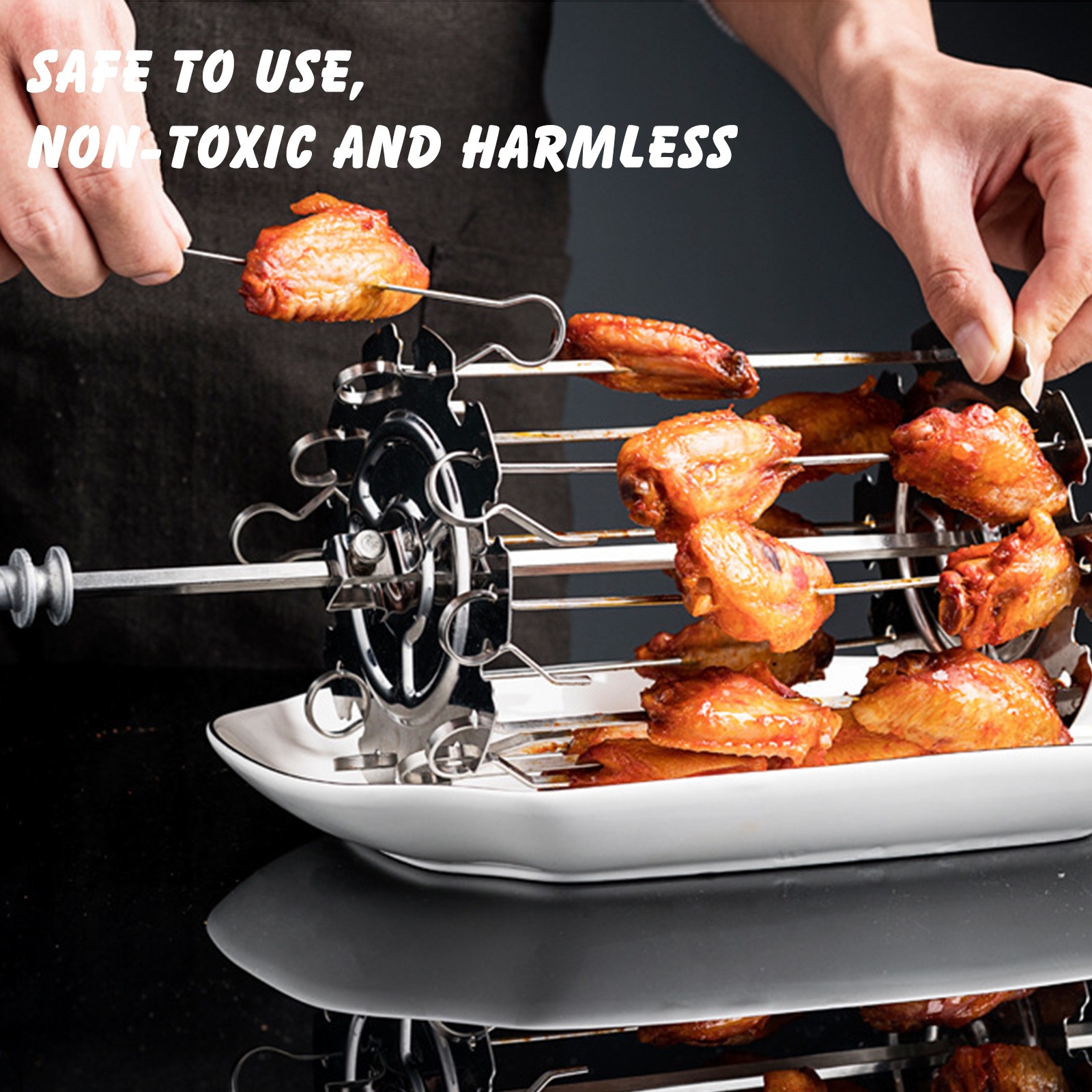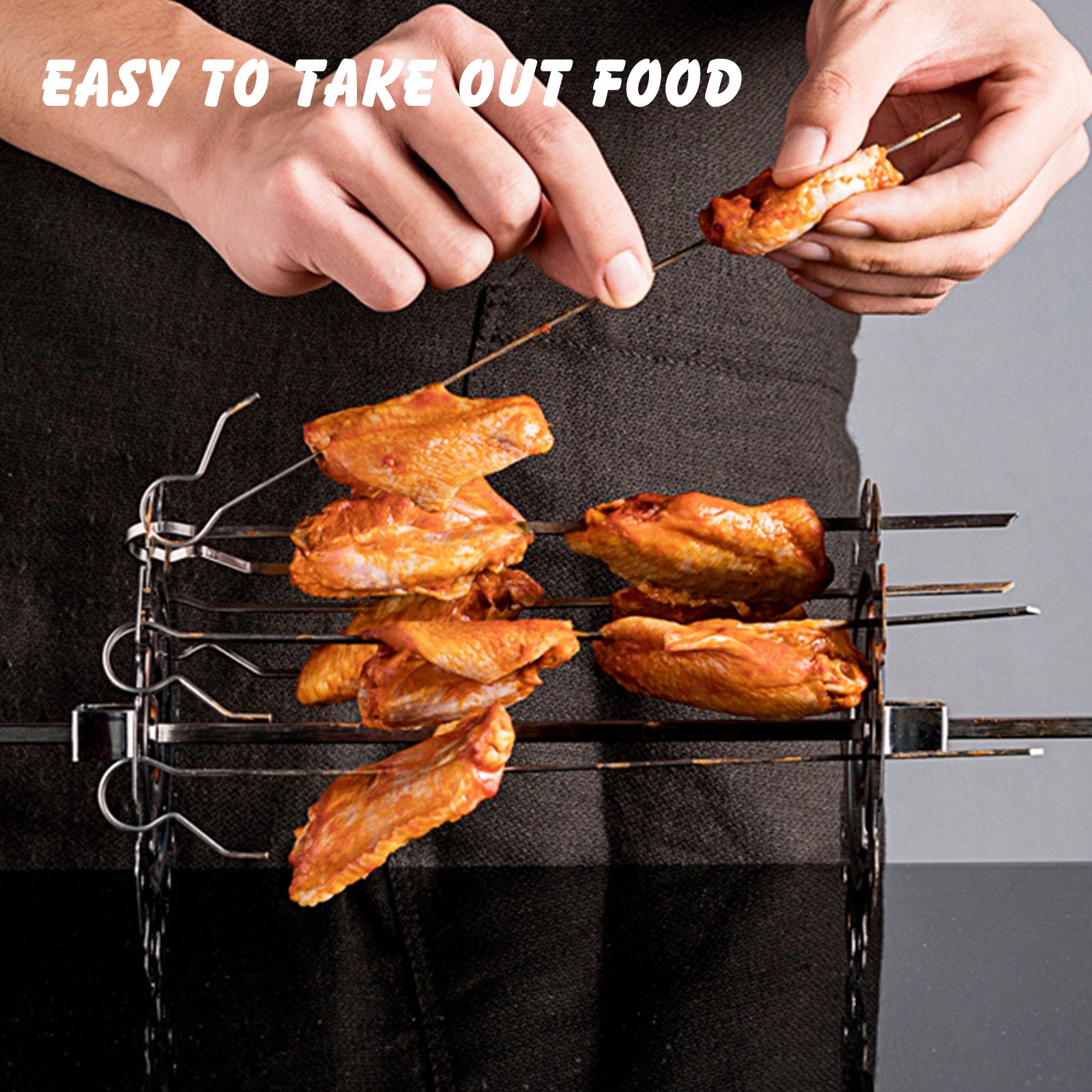 [Идеальный аксессуар для приготовления пищи]: 10 шампуров могут быть легко установлены на полке для многократного использования. Сильная циркуляция воздуха приведет кJ uicyИ нежное мясо и хрустящие овощи.