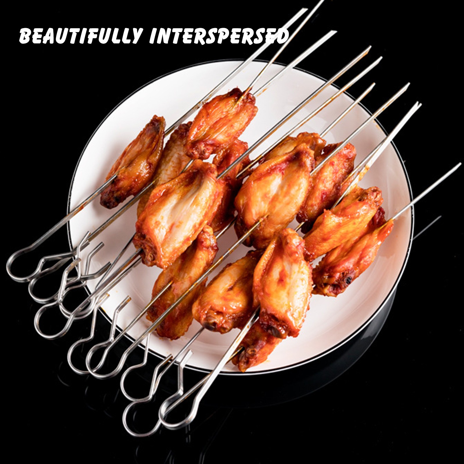 [Вкусные скептики на гриле]: Эти шпажки имеют гладкую поверхность, вы можете легко скользить по пище вверх и вниз, легко сделать вкусную еду. Отлично подходит для приготовления шашлыков, курицыW ingsНоги, говядина, рыба, овощи и так далее.