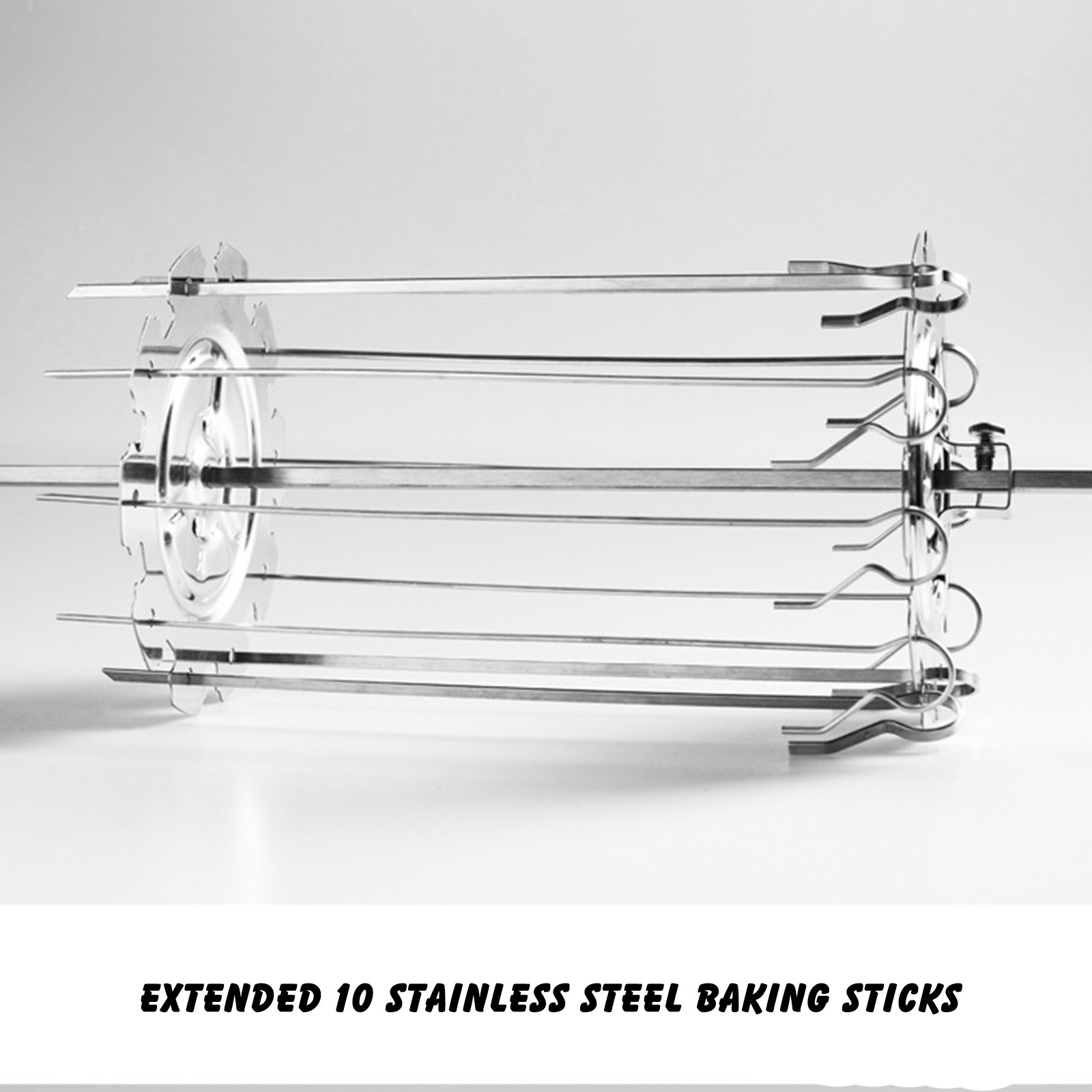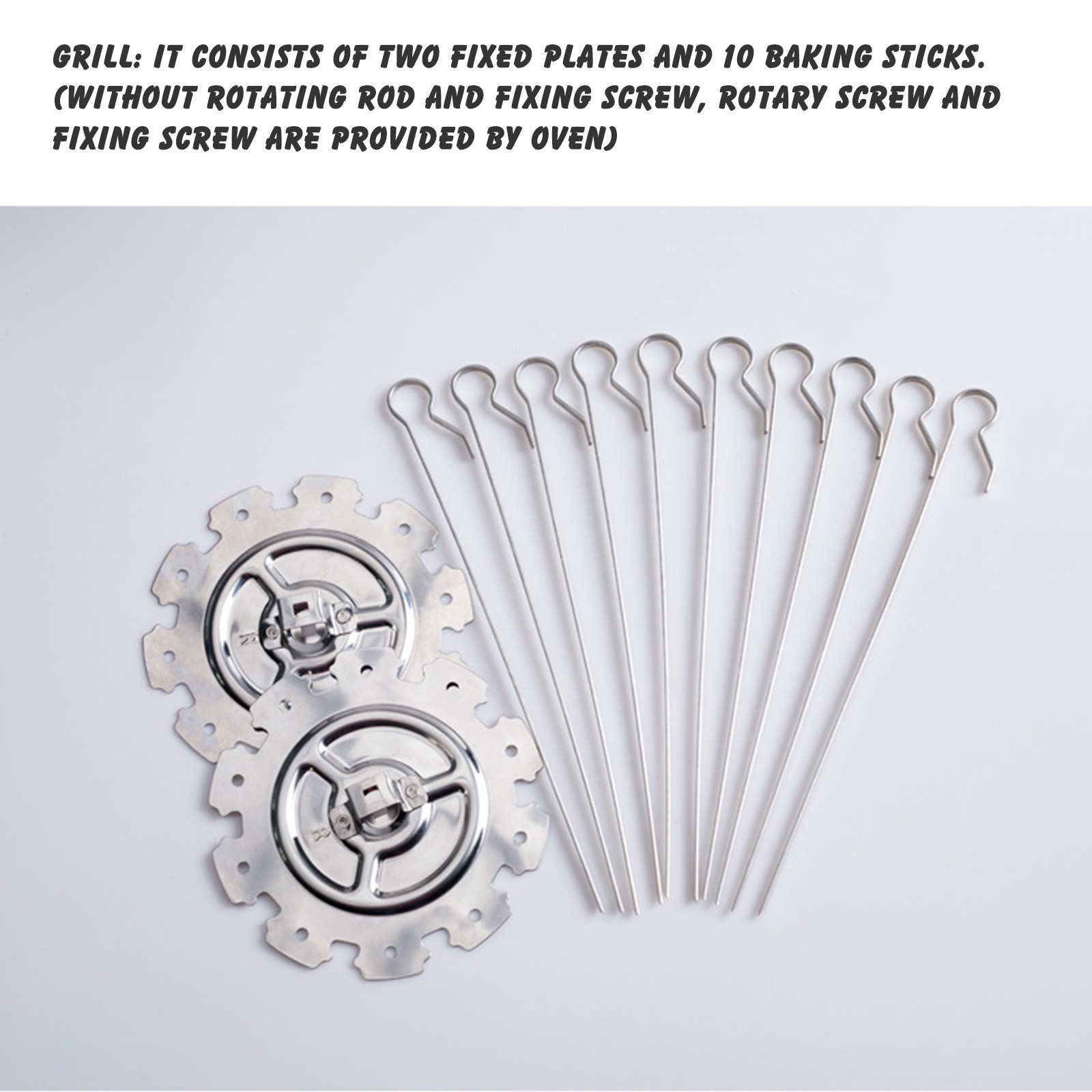 【Набор CONTAINS】: 1 комплект включает в себя 2 фиксирующие пластины и 10 палочки для выпечки (без вращающегося Стержня и фиксированных винтов), для удовлетворения ваших потребностей семьи. Может использоваться для приготовления шашлыков, цыплятW ings, Кишечника, рыбы и другого мяса.