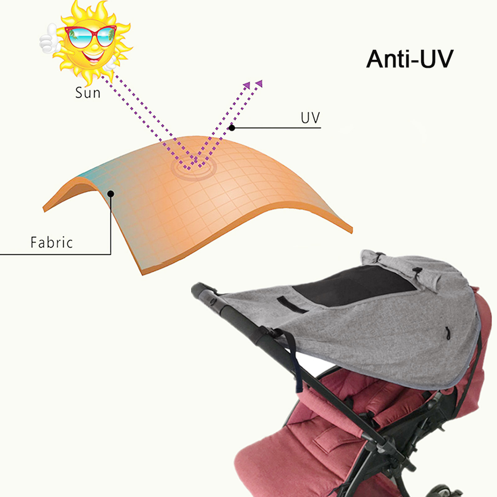 Защита от ультрафиолета и водонепроницаемость:Этот солнцезащитный козырек для коляски помогает противостоять ультрафиолетовым лучам и солнечным лучам, не допускать повреждения нежной кожи и глаз вашего малыша от сильных ультрафиолетовых лучей и солнечных лучей. Изготовлена из катионной водонепроницаемой ткани, может использоваться как обычно в дождливые дни.