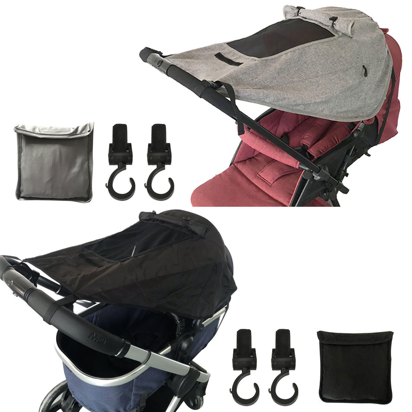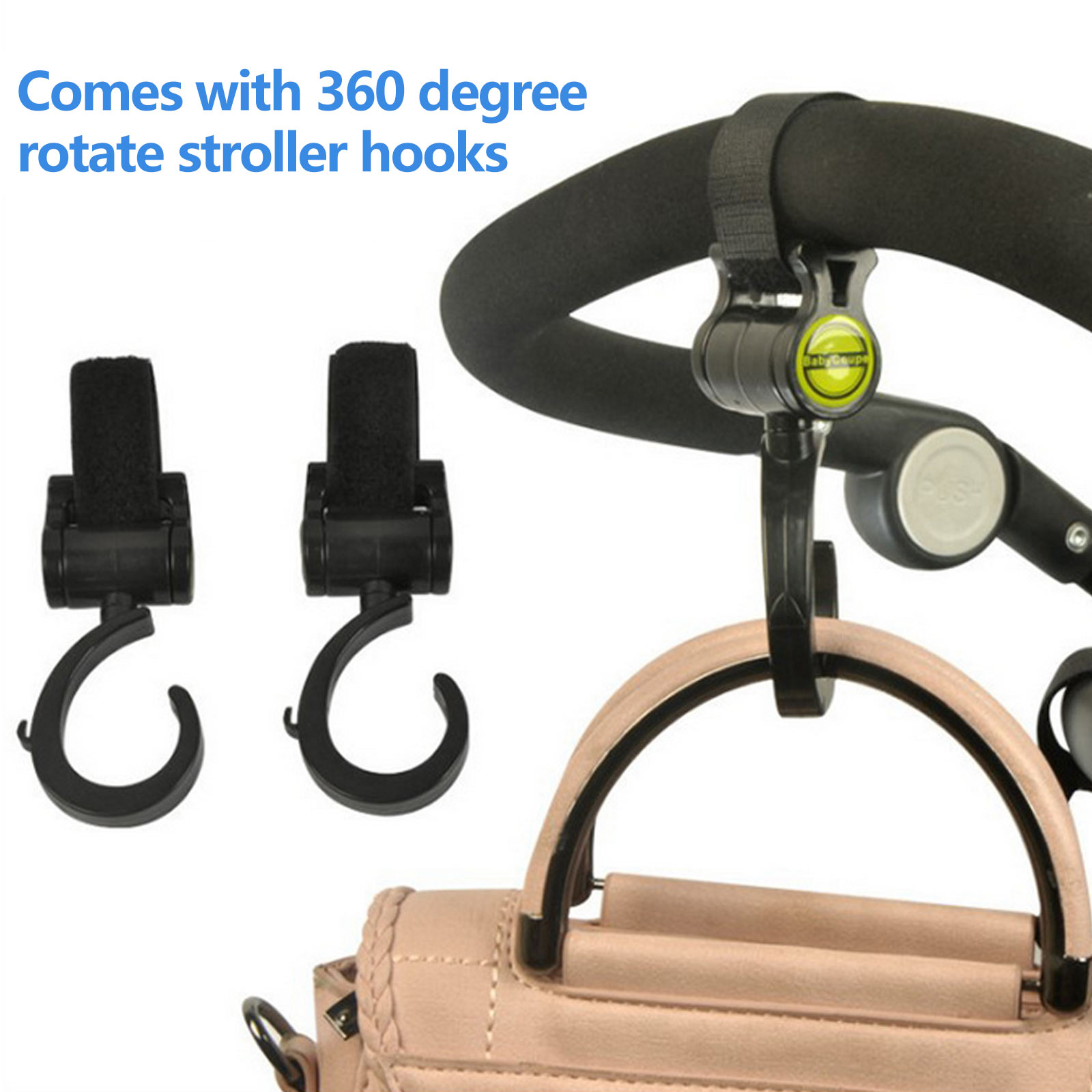 С Крючки для прогулочных колясок:Поставляется с 2шт. Вращение на 360 градусов крючки для прогулочных колясок,Удобно вам повесить сумочку, рюкзак, сумку-Шоппер или другие предметы на детские коляски. Мешочек для хранения удобен для хранения солнцезащитного козырька. С этими аксессуарами,Вы можете легко использоватьКоляскаЧтобы вывести ребенка на прогулку, кемпинг и т. д., и наслаждаться счастливым временем родителя и ребенка.