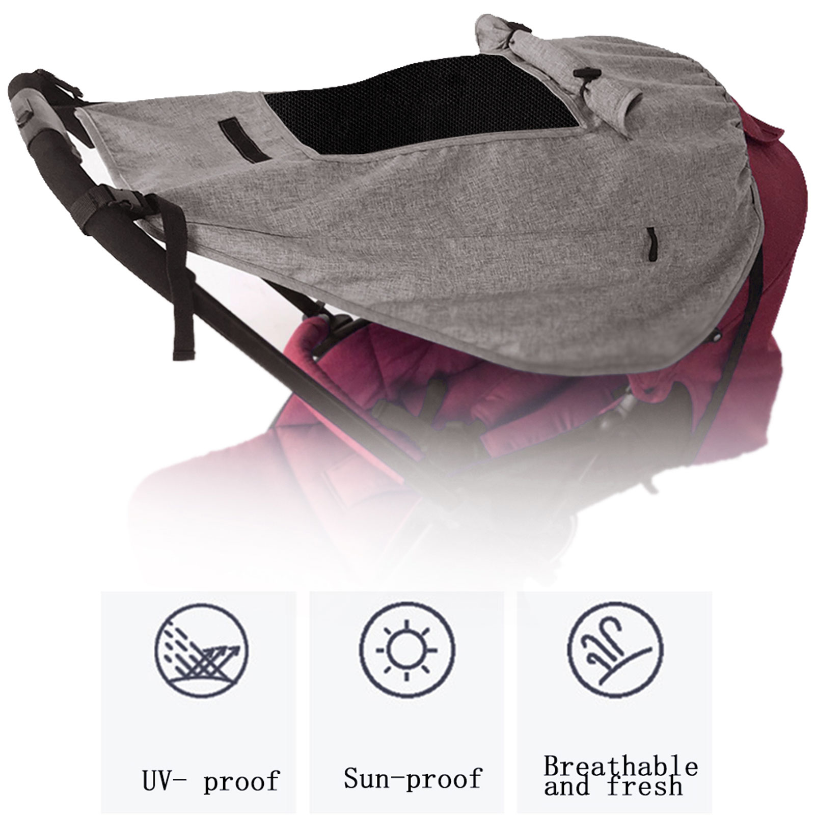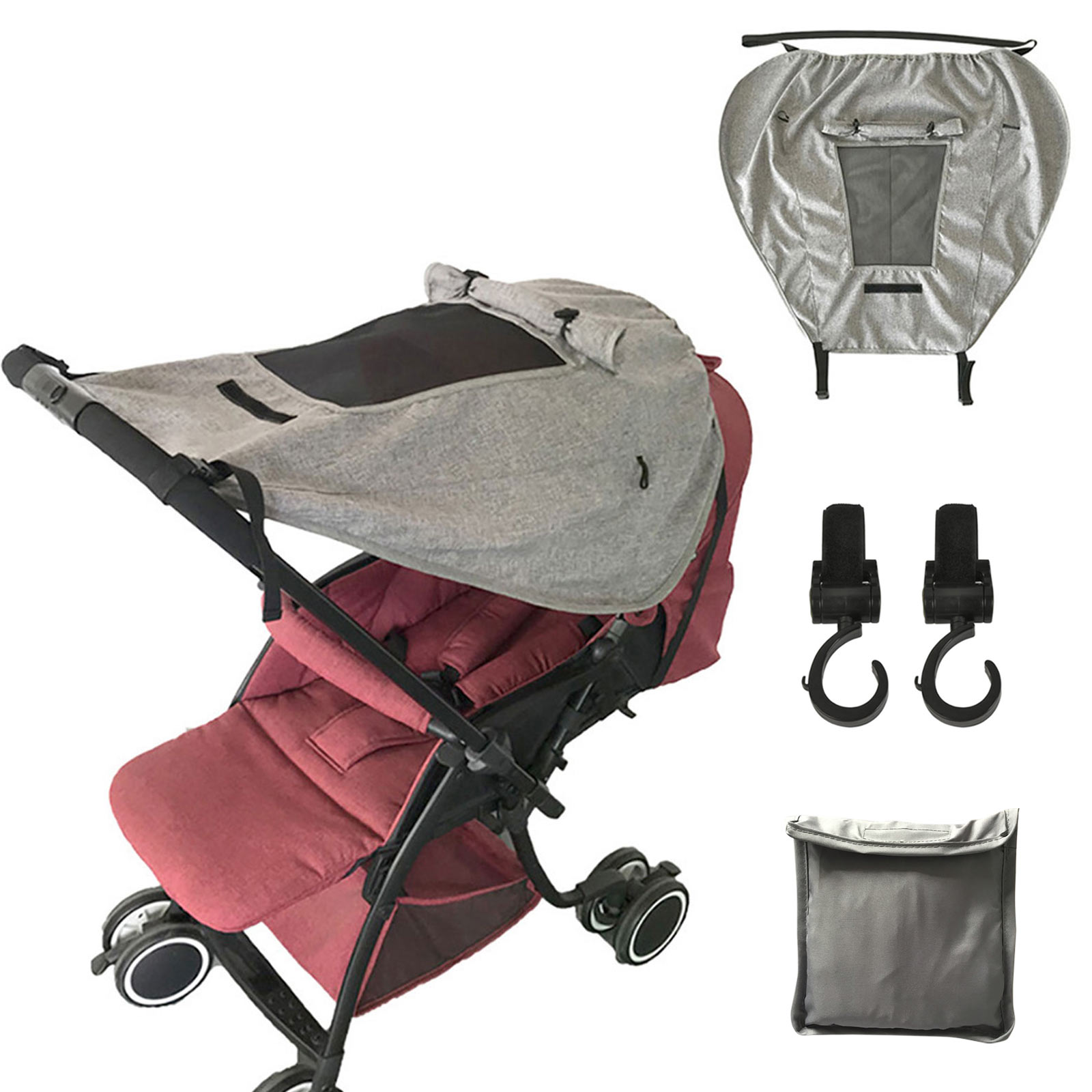 Универсальный Тент от солнца для колясок, защита от УФ-лучей, водонепроницаемый тент с смотровым окошком и крючки для прогулочных колясок для колясок, багги
