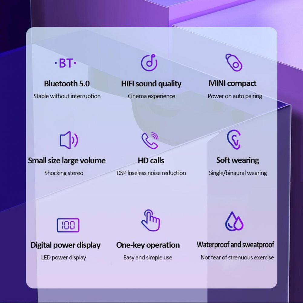 Характеристики: Bluetooth 5,0, беспроводной, в ухо, без рук, светодиодный цифровой дисплей
