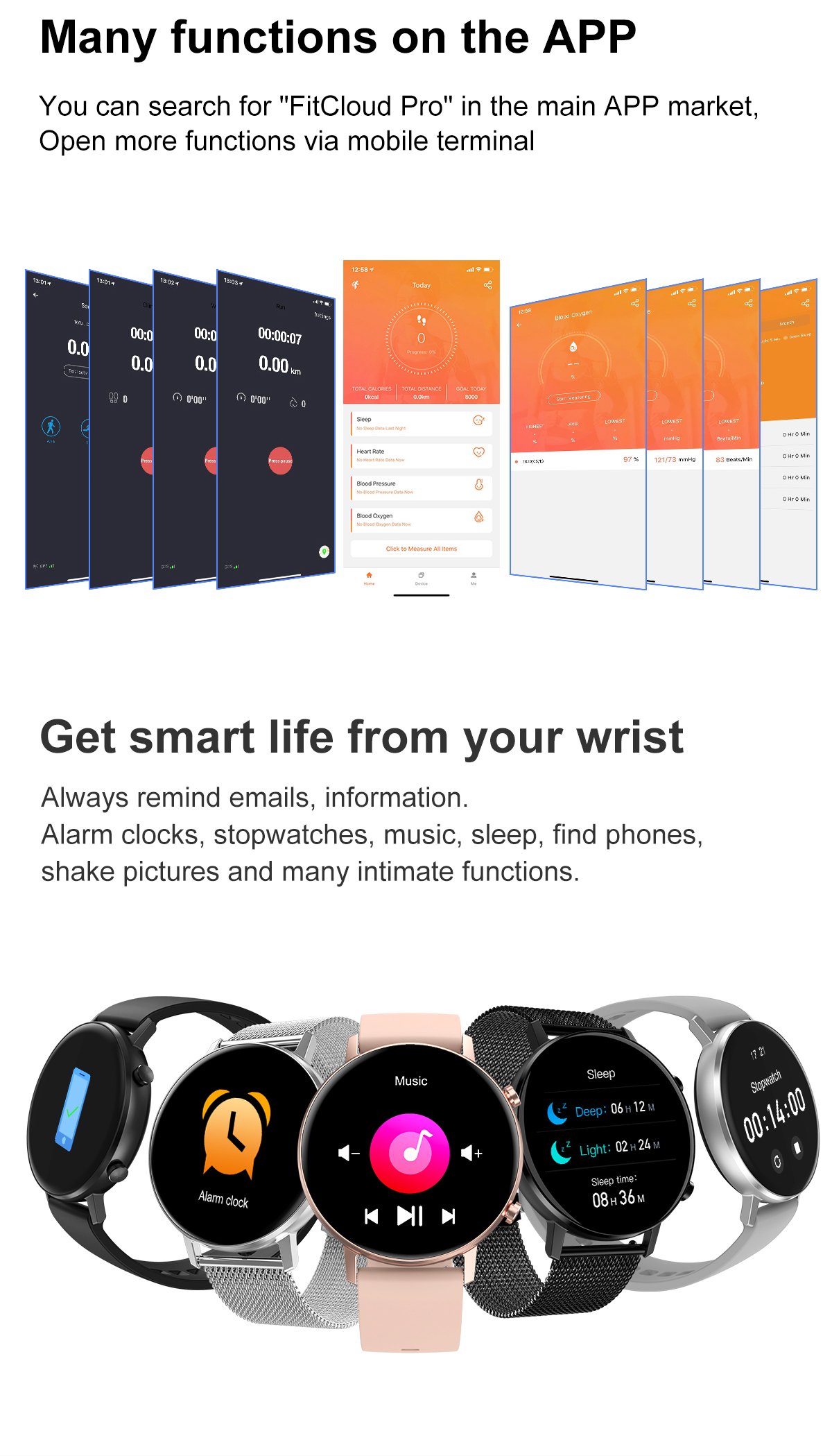 Вы можете найти «FitCloud Pro» на основном рынке приложений, открыть больше функций через мобильный терминал
