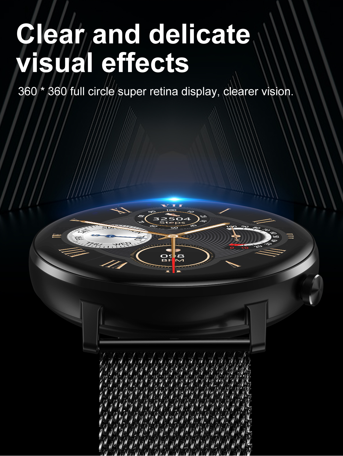 360*360 полный круг Супер retina дисплей, более четкое видение.