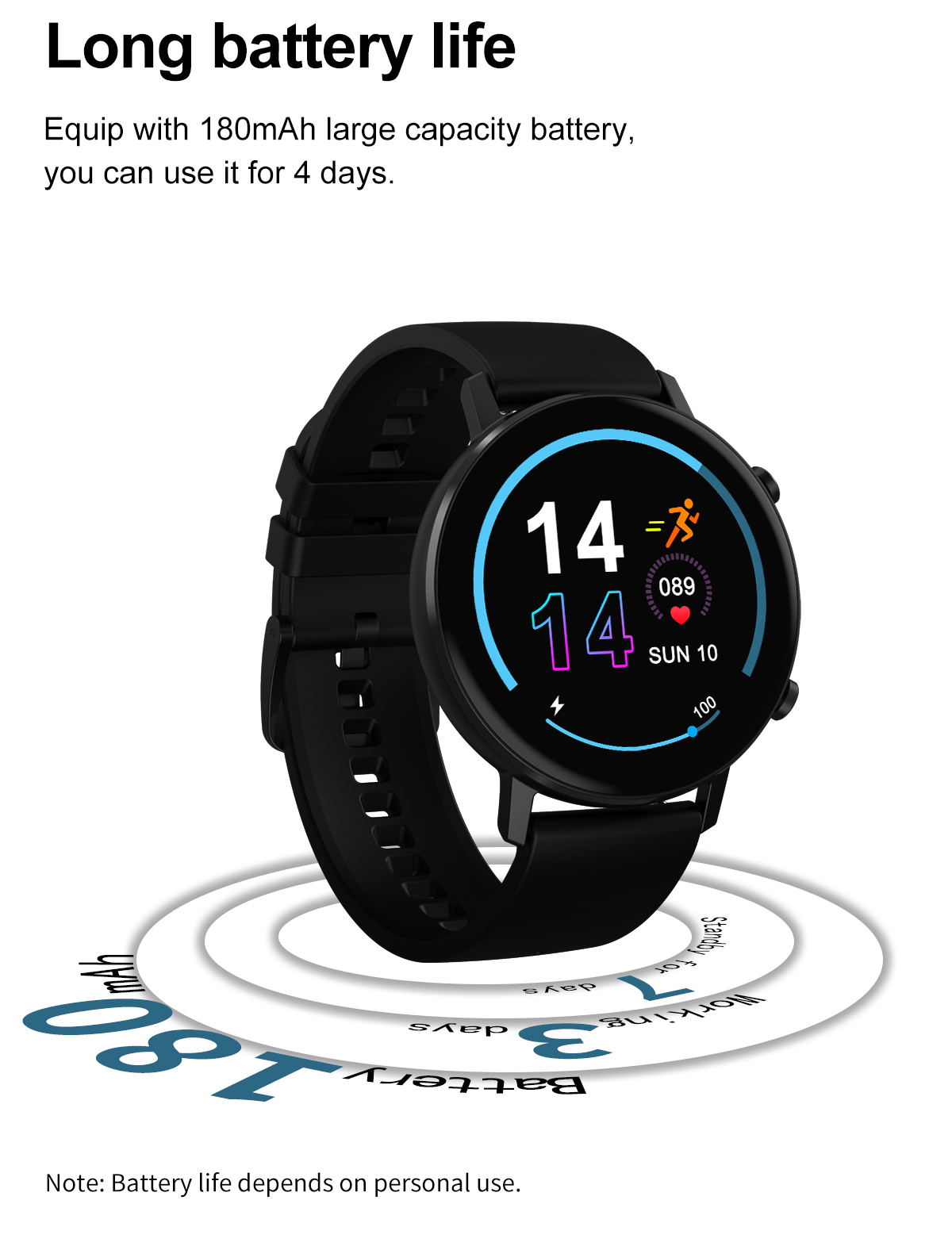 Оснащен аккумулятором большой емкости 180 мАч, вы можете использовать его в течение 4 дней.