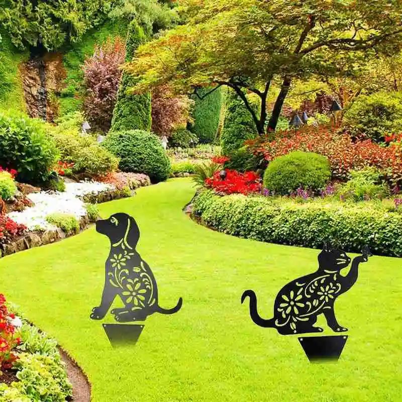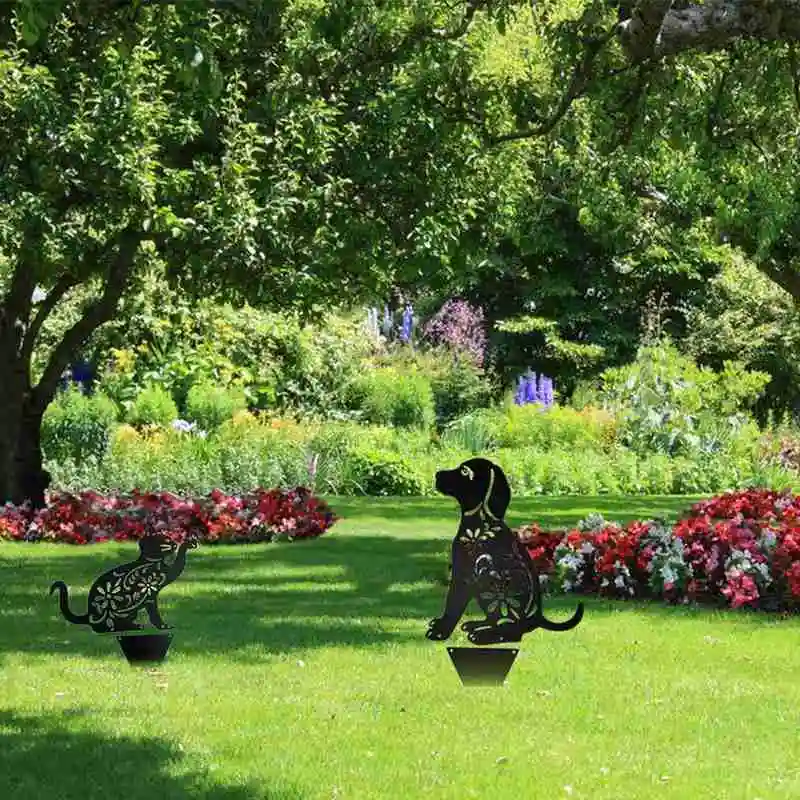 Name: Metal Hollow Iron Cat and Dog Garden Decorative Pile