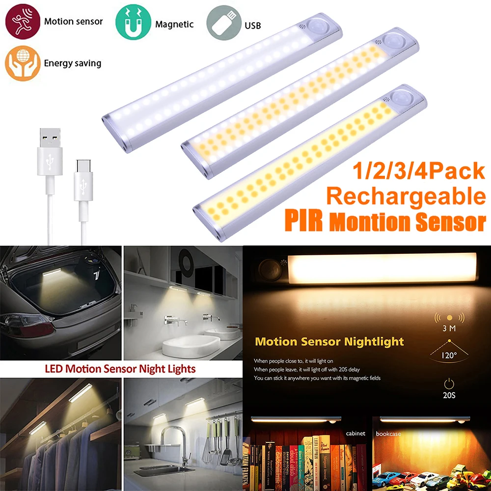 1/2/3/4X Перезаряжаемые светодиодный PIR Сенсор шкаф светодиодный светильник (каждый светильник включает в себя 1 шт. USB кабель)