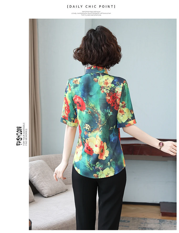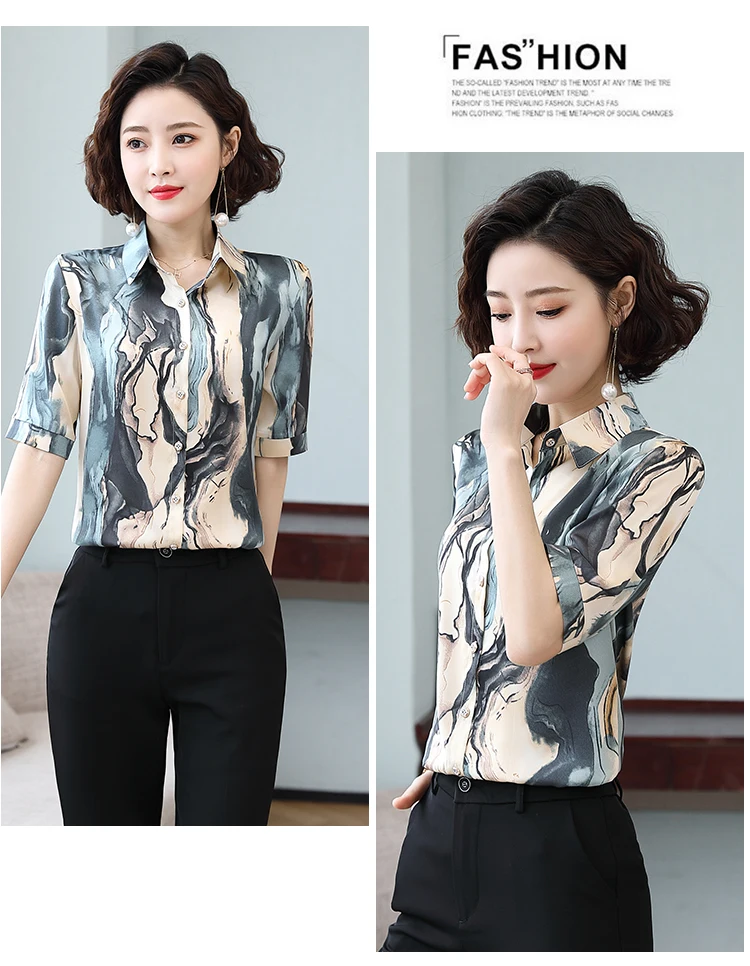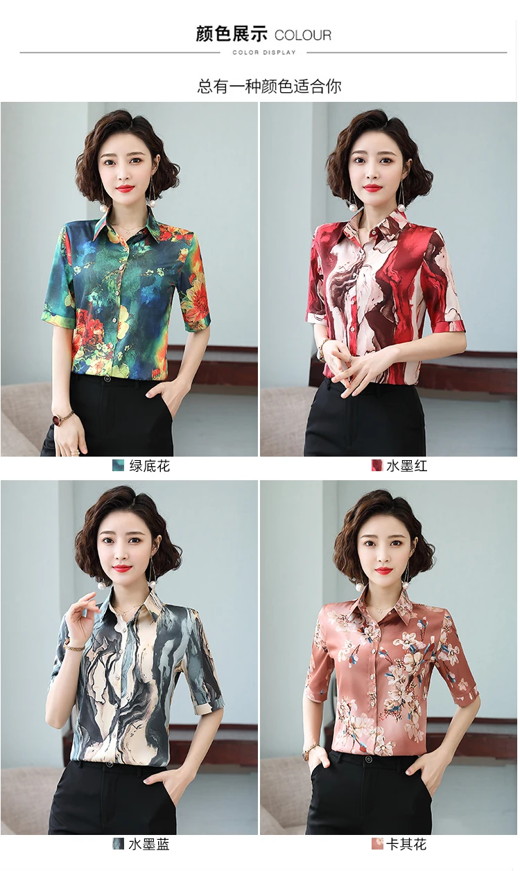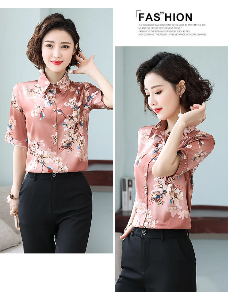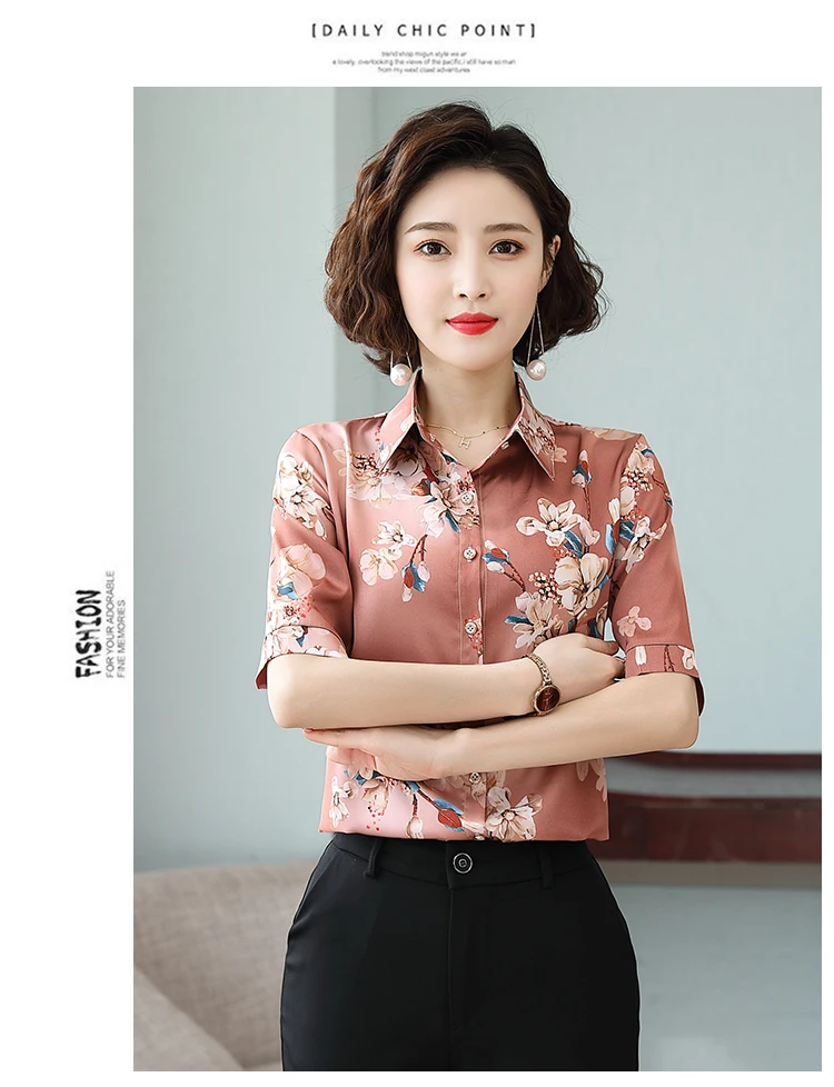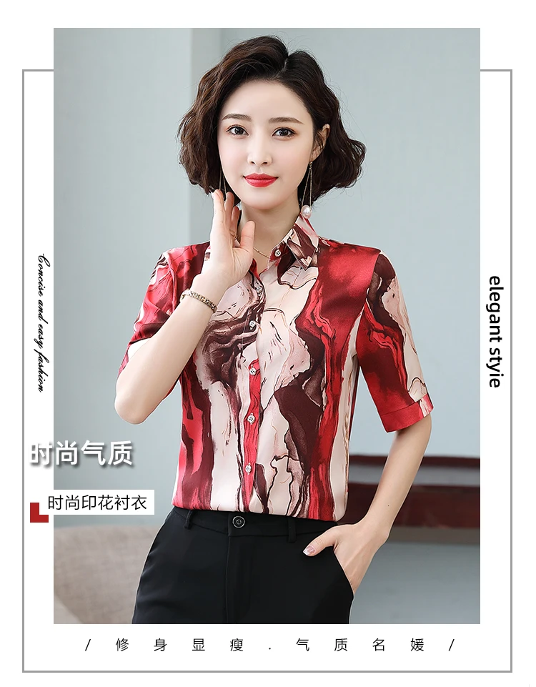 Женская шелковая атласная рубашка TingYiLi M-5XL размера плюс с принтом, летние топы с коротким рукавом и цветочным принтом, Женская Офисная рубашка в Корейском стиле