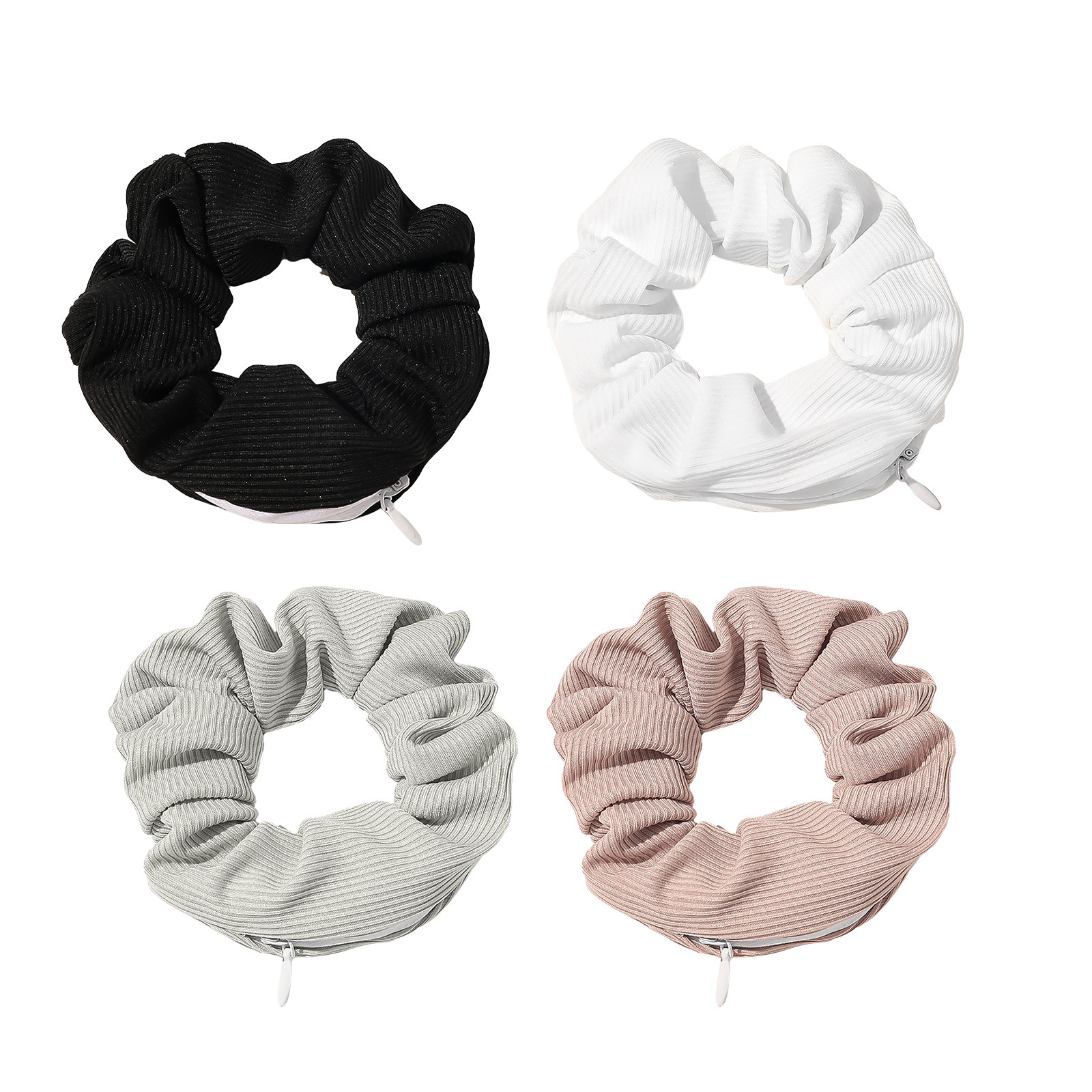 4 шт. резинки для волос на молнии однотонные очаровательные бархатные со скрытым