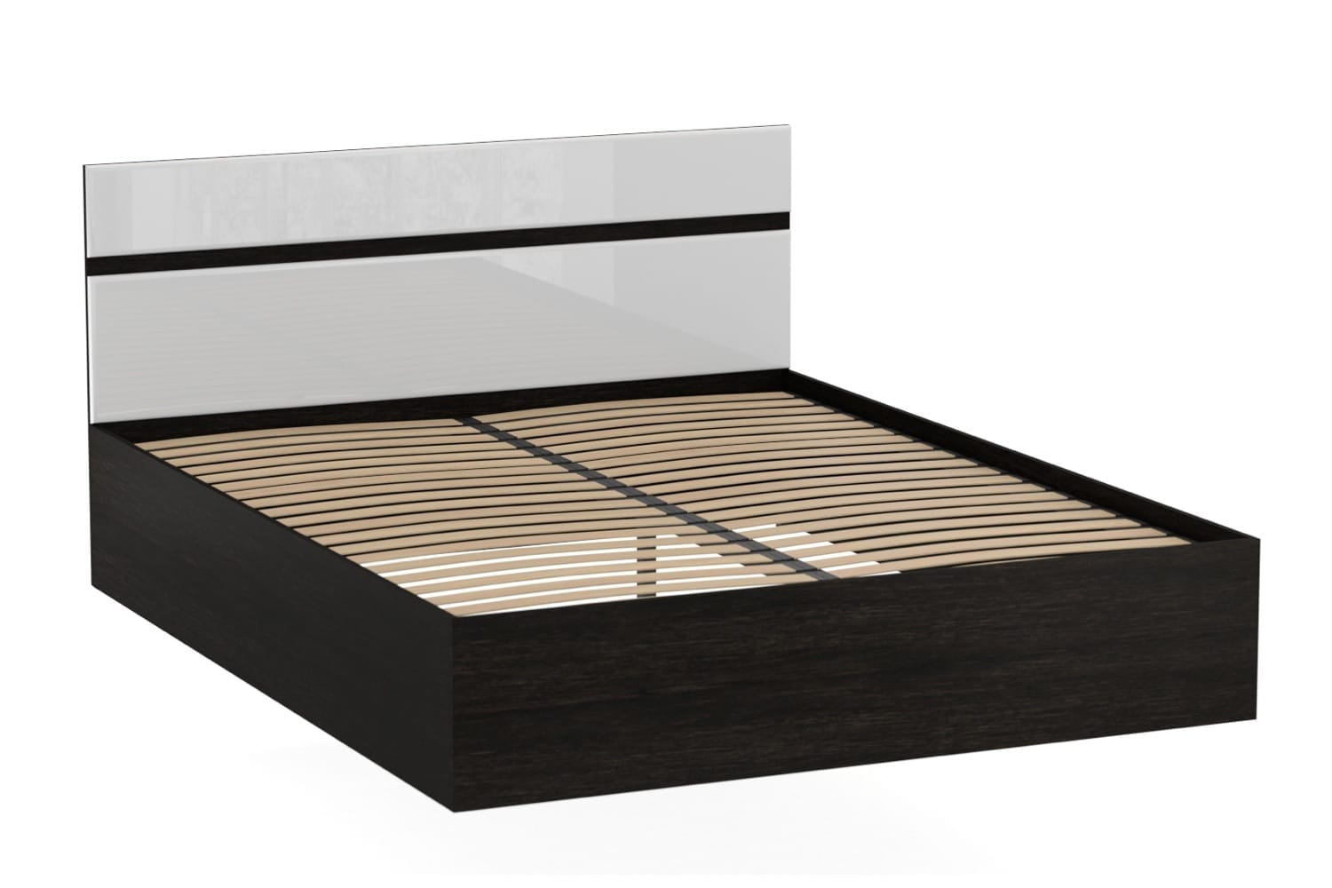 Кровать с с глянцевыми фасадом и горизонтальной фрезеровкой.