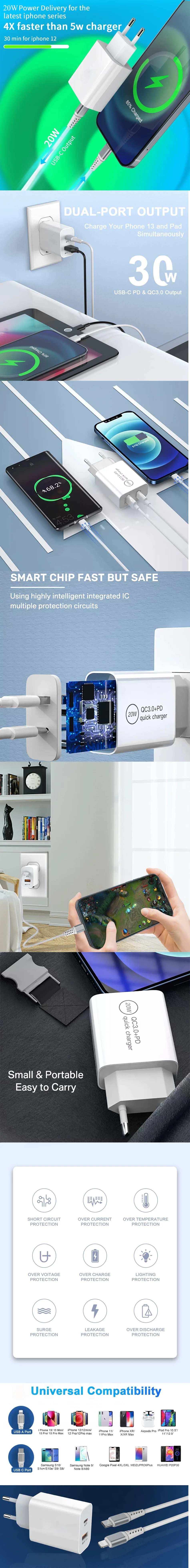 Название продукта: 20W быстрое зарядное устройство PD зарядное устройство 5V 3A/9V 2A/12V 1.5A