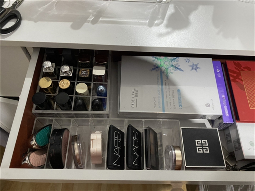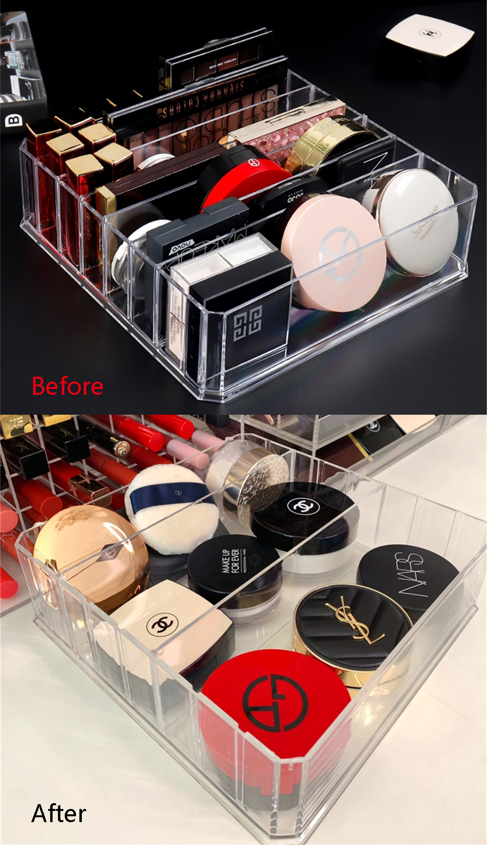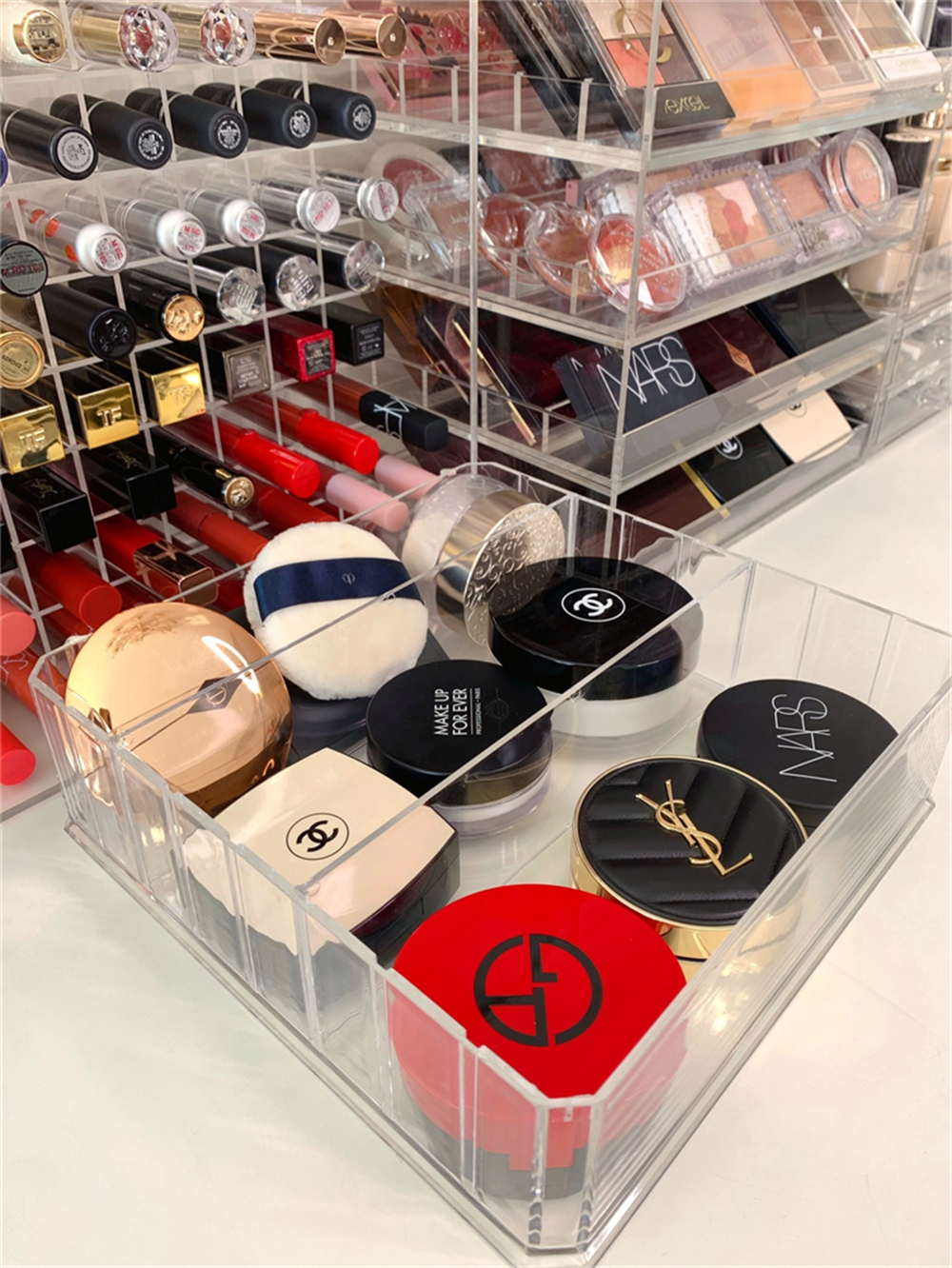 Характеристики продукта: прозрачный акриловый материал, регулируемая ширина отсеков, отлично подходит для рабочего стола и рисования, подходит для различных теней для век, румян для щек, прессованной пудры и т. д.