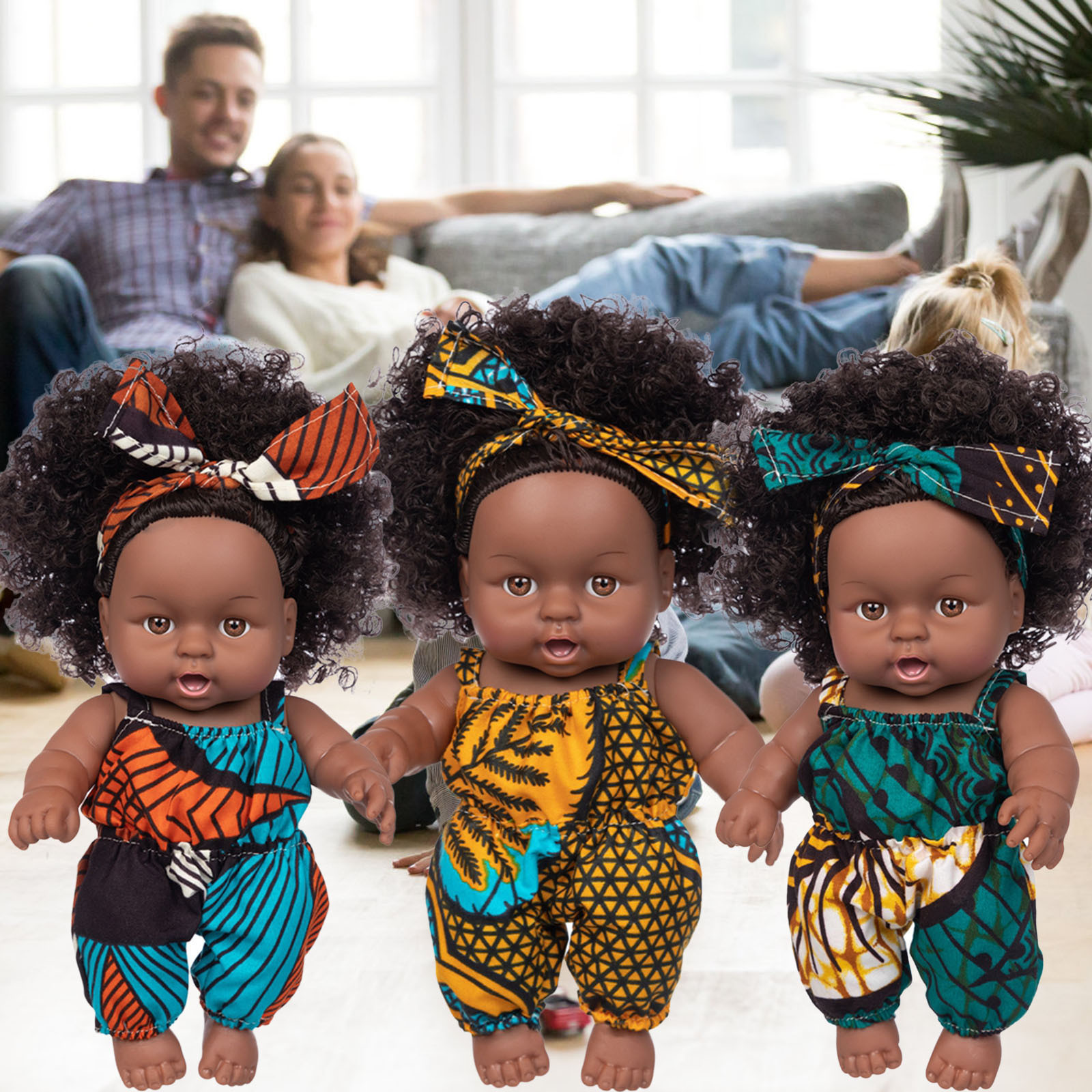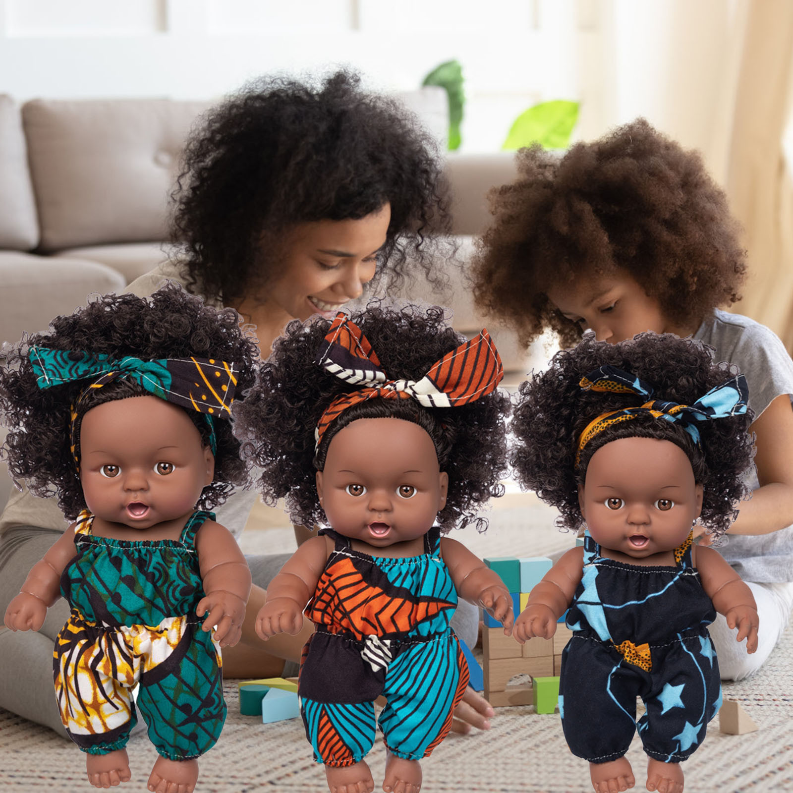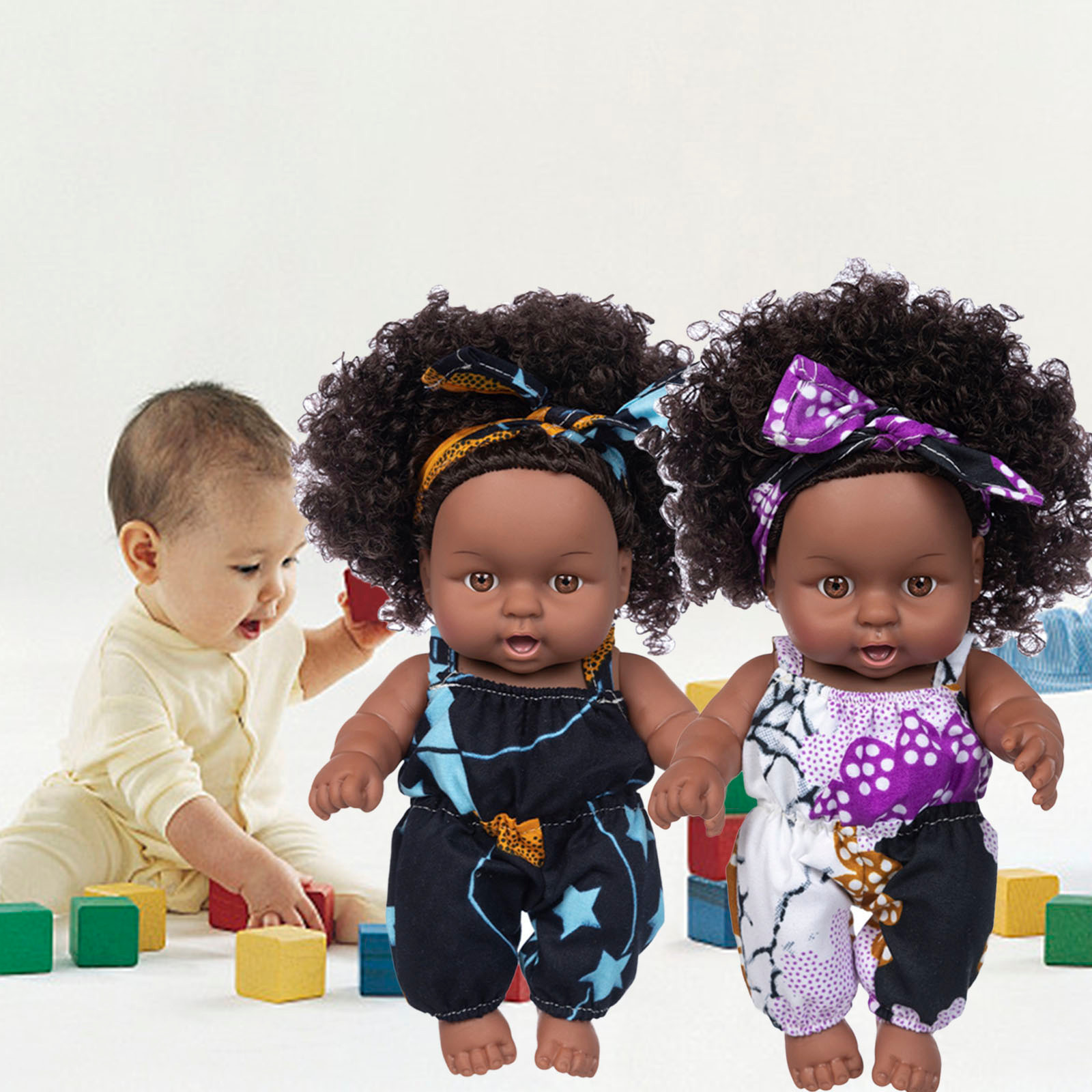Black African Black Baby Cute Curly Black 8-Inch Vinyl Baby Toy