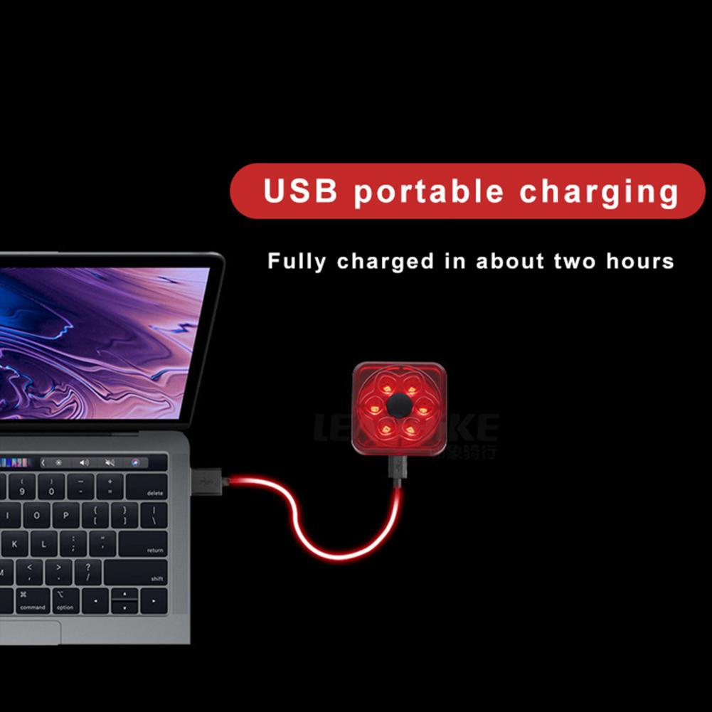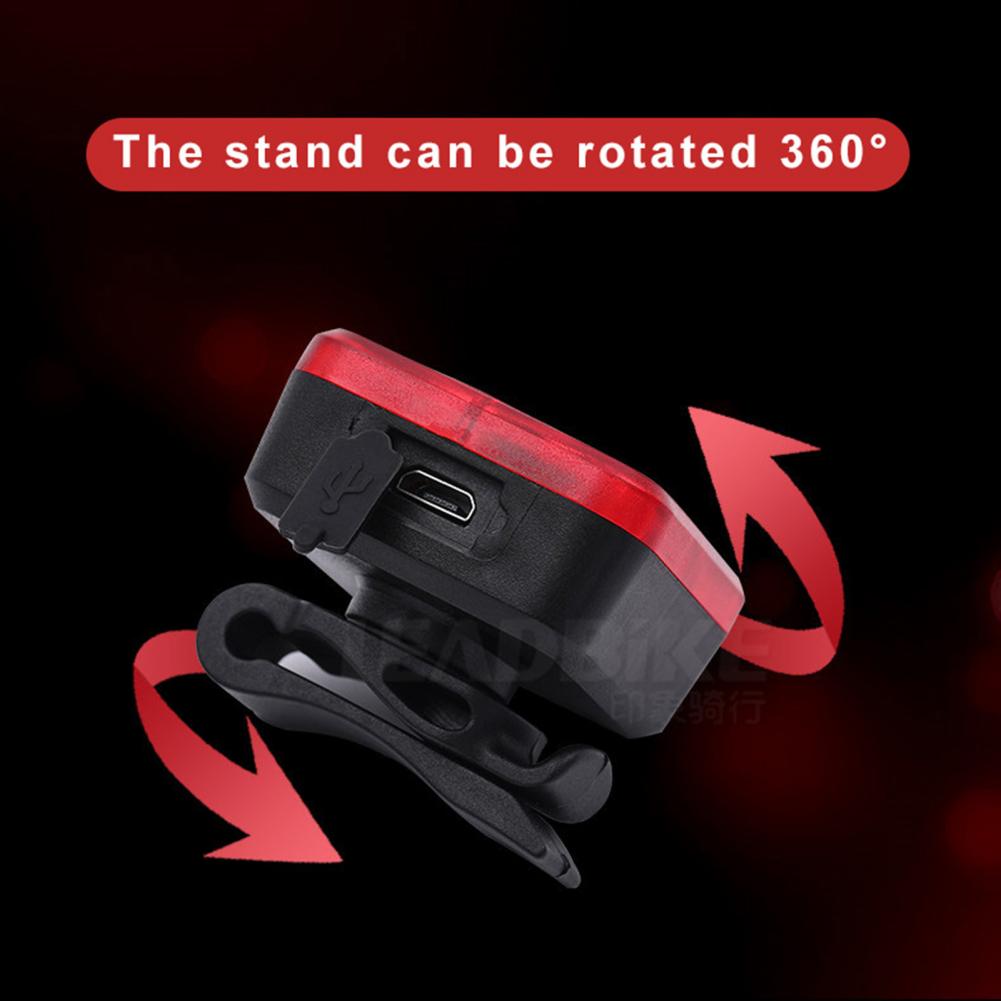 USB rechargeable, it can be fully charged in about 2 and a half hours. The buckle can be rotated 360 degrees, and the battery capacity is 200mAh. This high-brightness USB charging bicycle taillight has four modes, including quickly flashes, slowly flashes, rhythmically flashes, and every lamp bead one by one flashes.