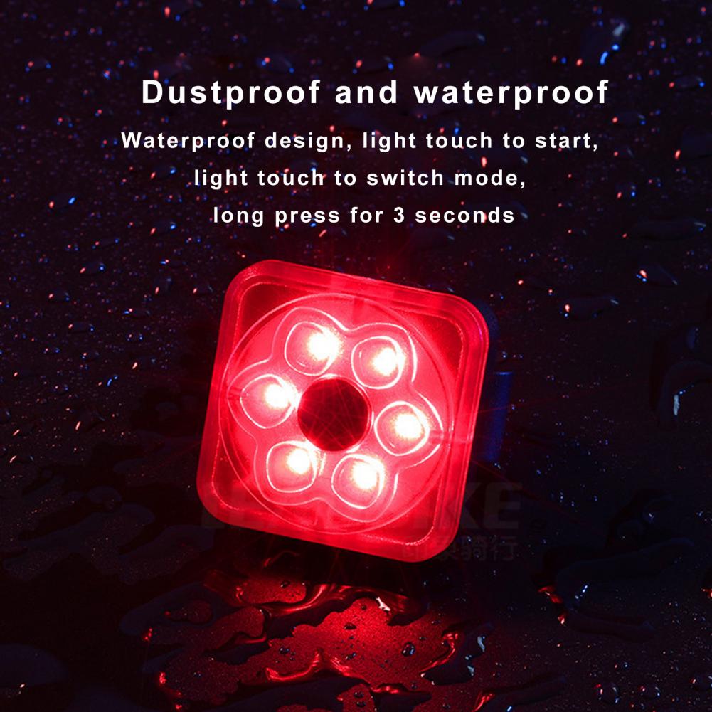 Water-proof and dust-proof, the taillight is not afraid of rain and other bad weather. It is easy to operate, touch to switch on lightly, lightly touch mode switch, long press for 3 seconds to turn on and off. Through the silicone strap, you can fix it on the bike, not need to use tools to install or disassemble, which is quick and convenient.
