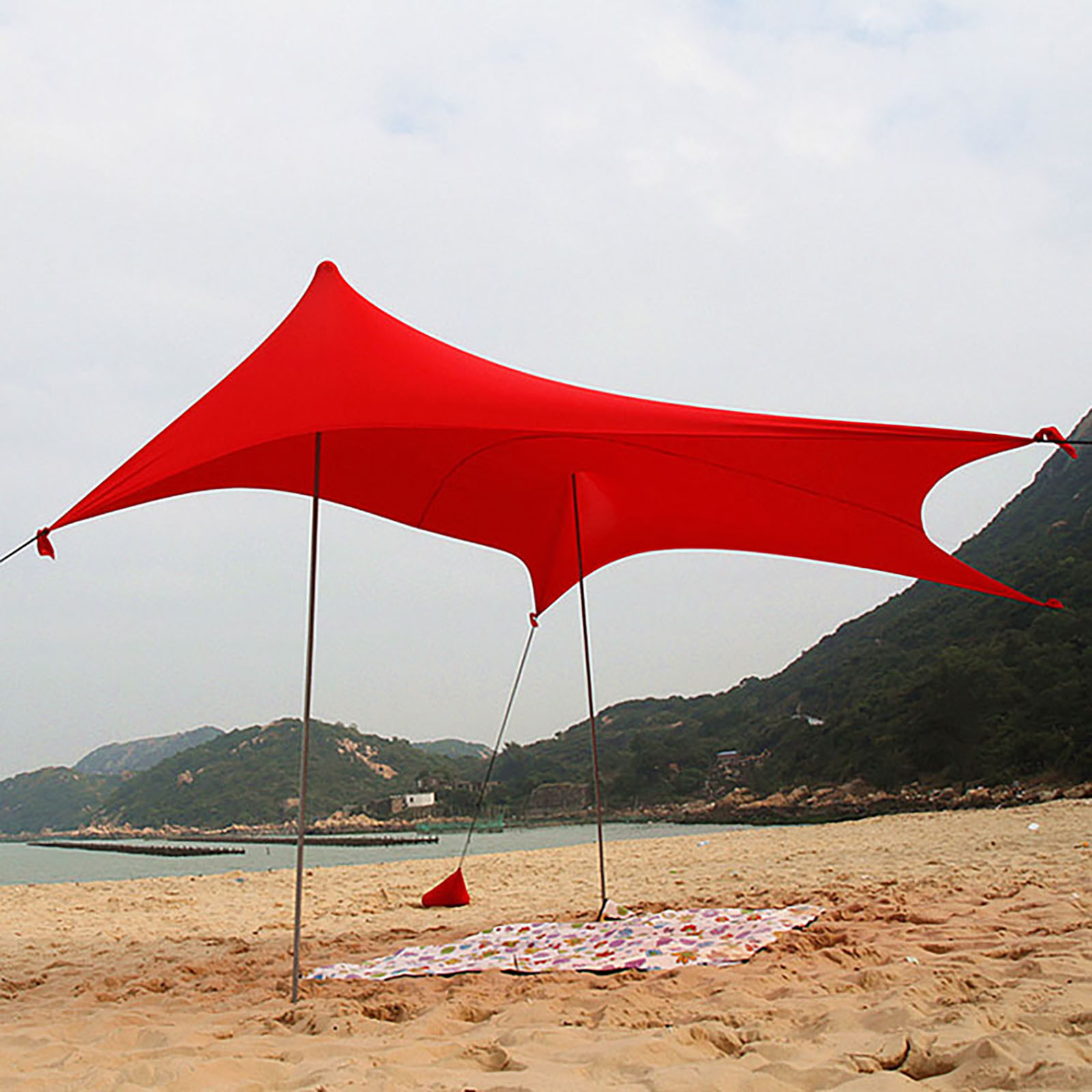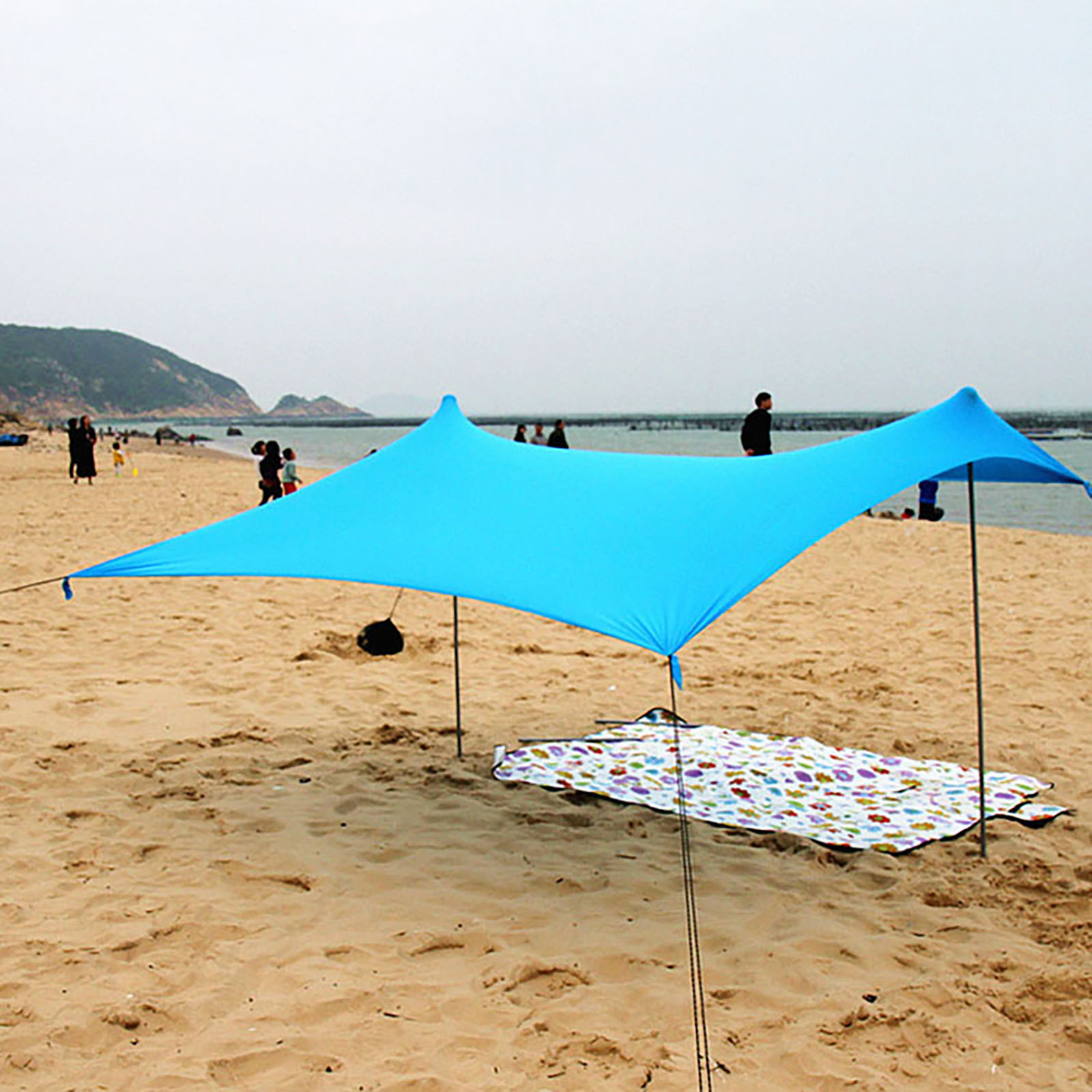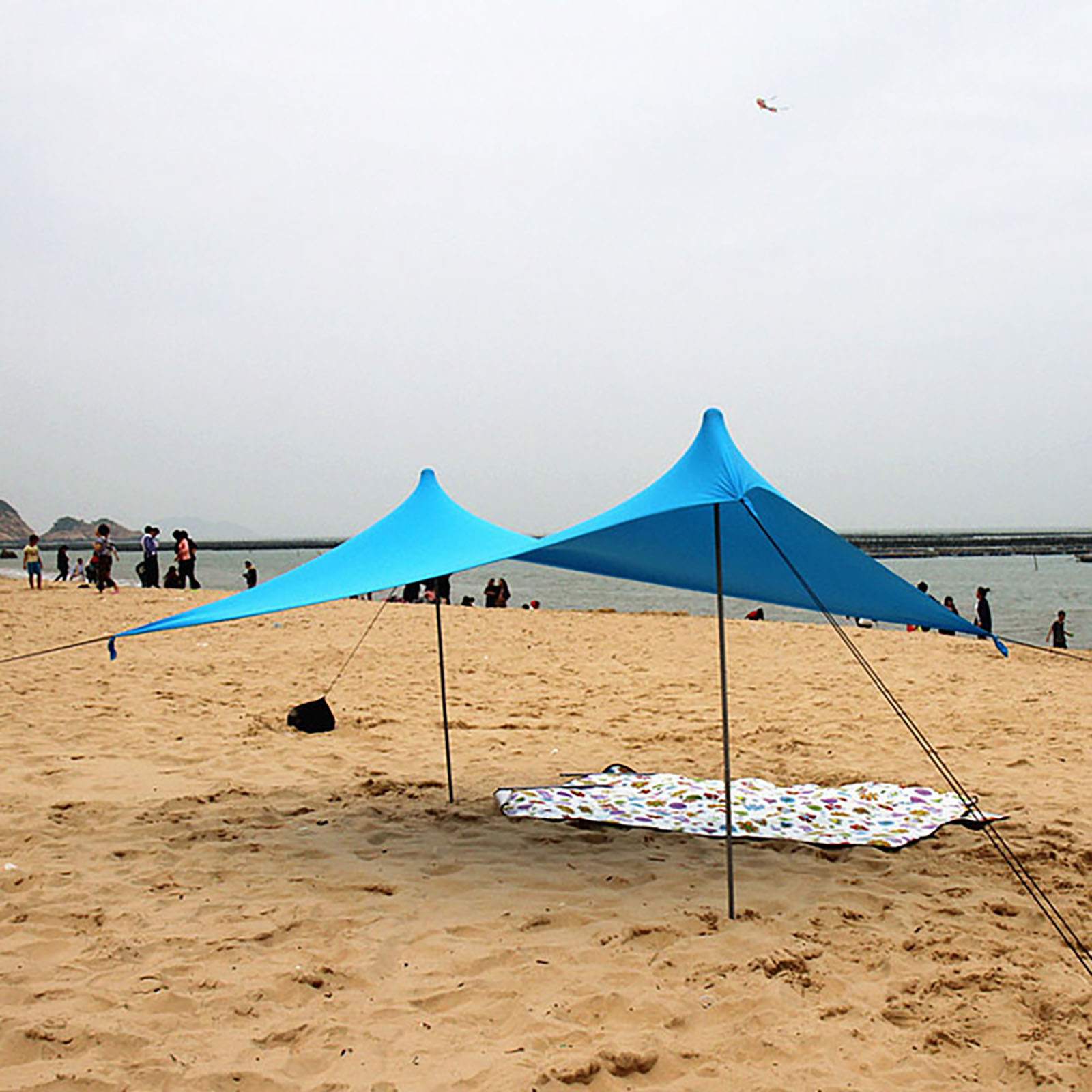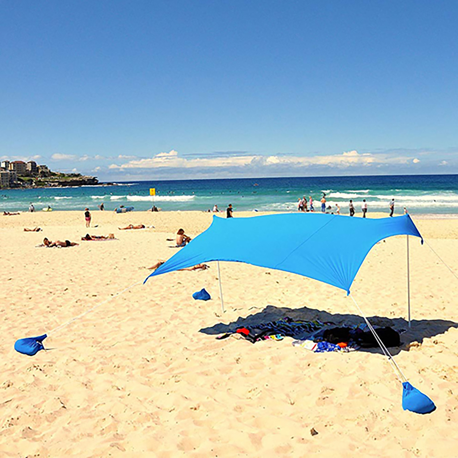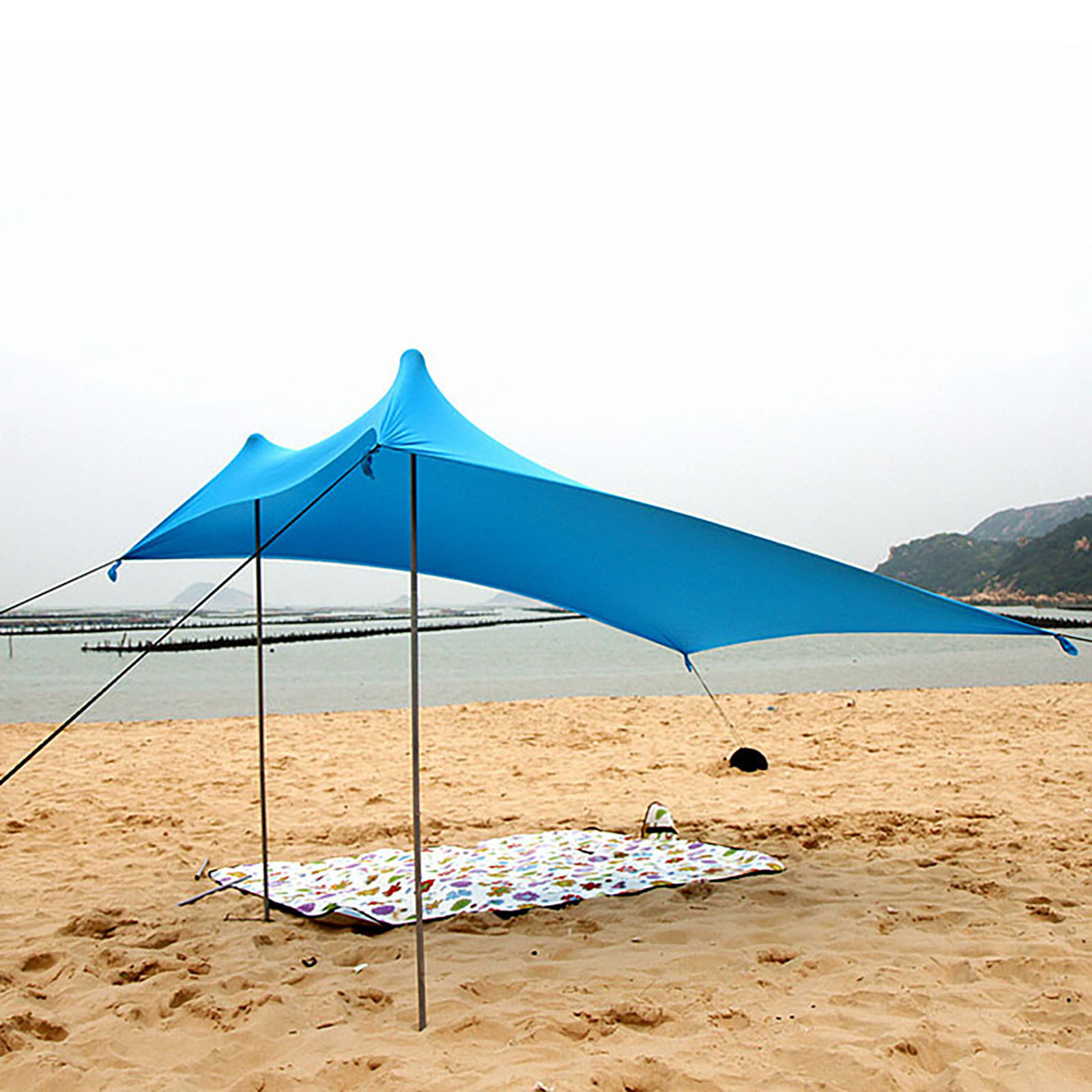 Быстрая и легкая установка на открытом воздухе-пляжный тент, солнцезащитный тент, легко устанавливается и поставляется с стойкими полюсами и якорем, которые позволяют использовать его над песчаными пляжами, густыми травяными зонами или даже в местах для кемпинга.