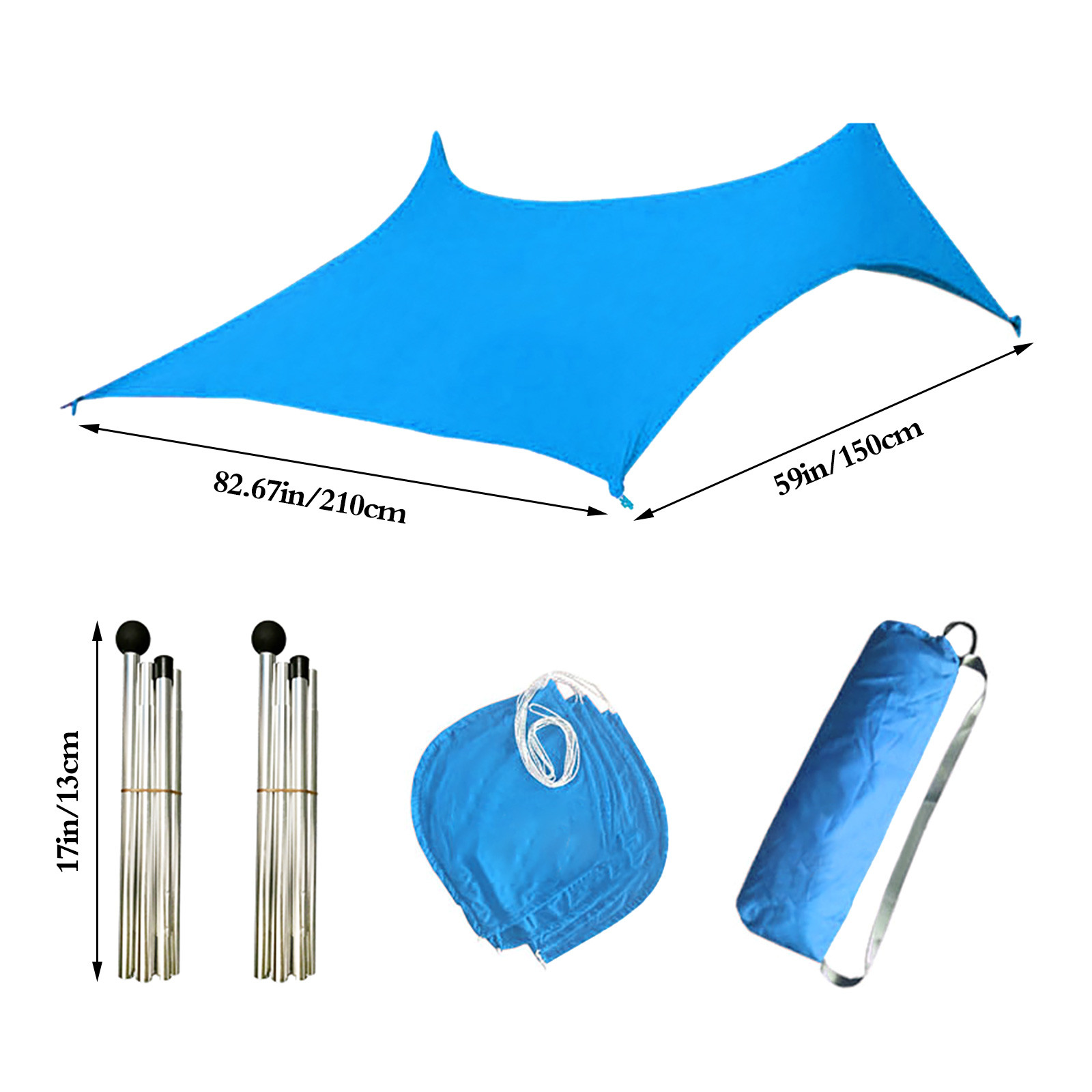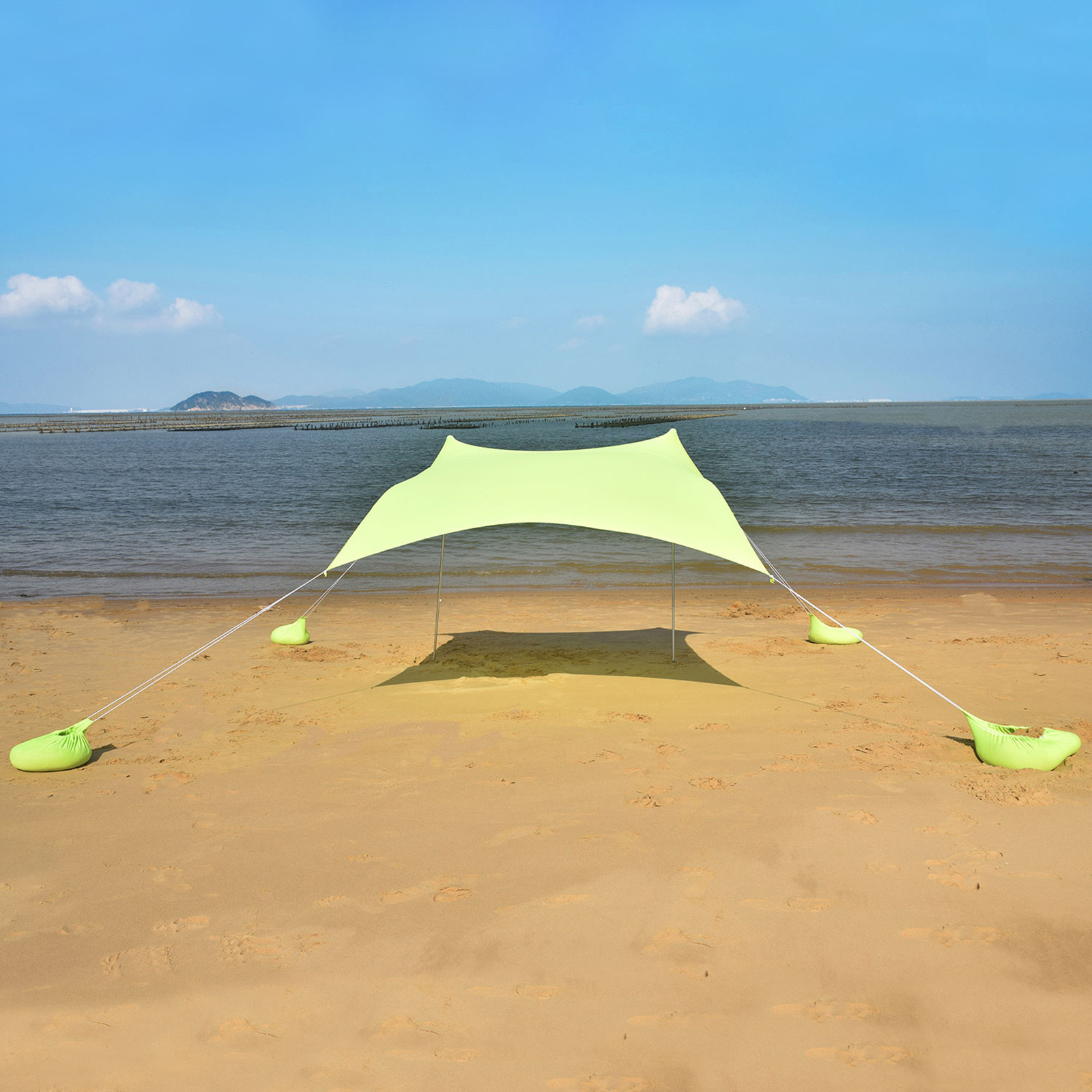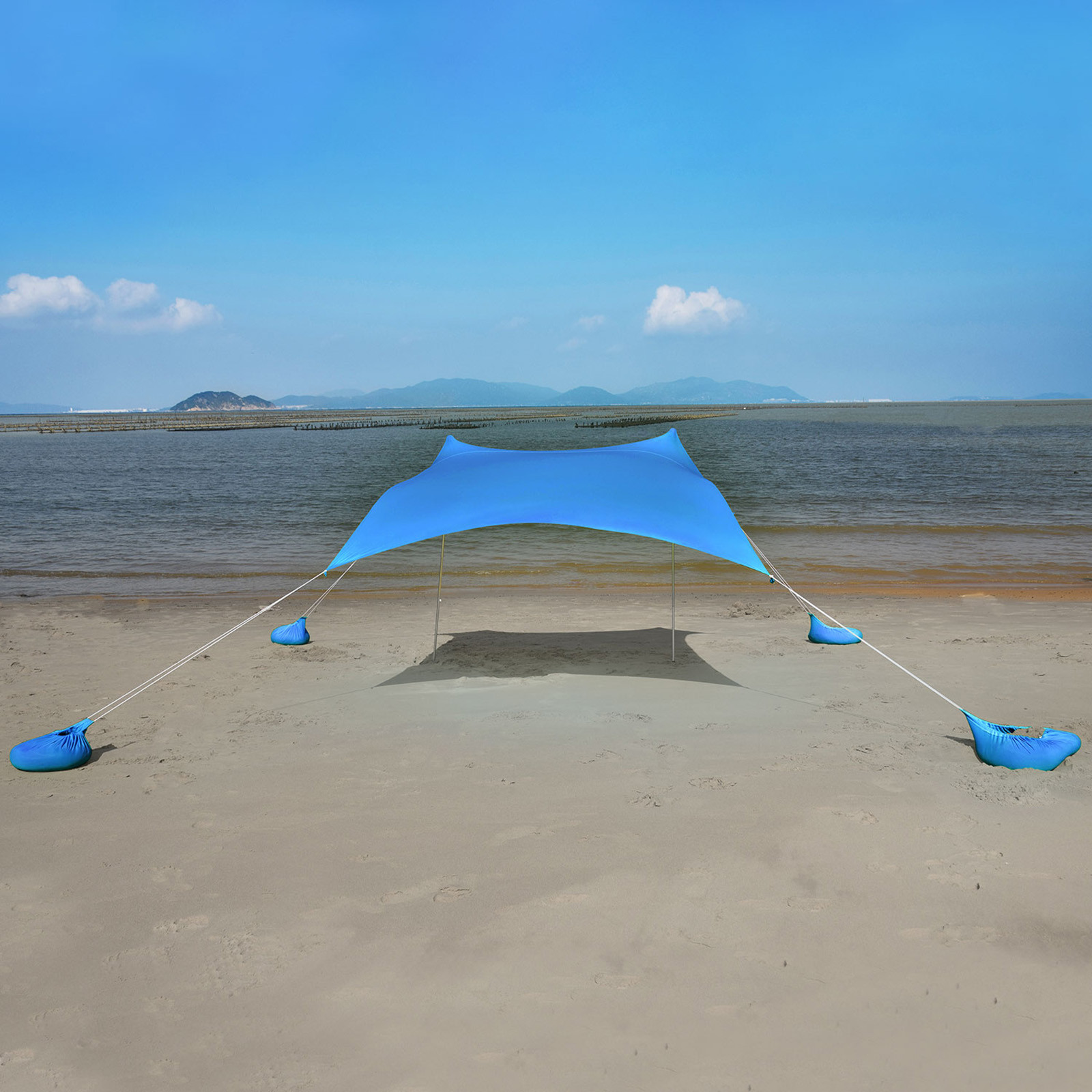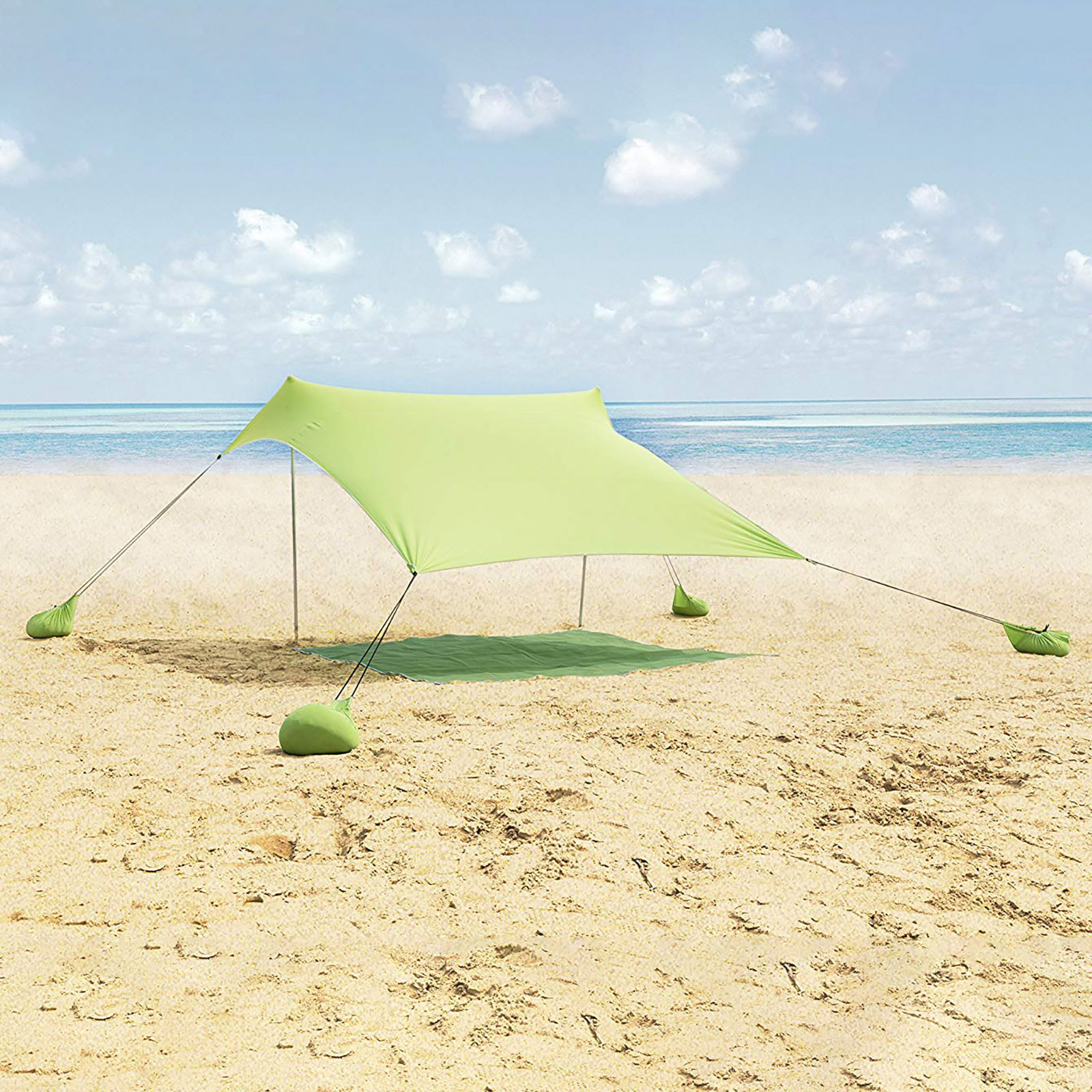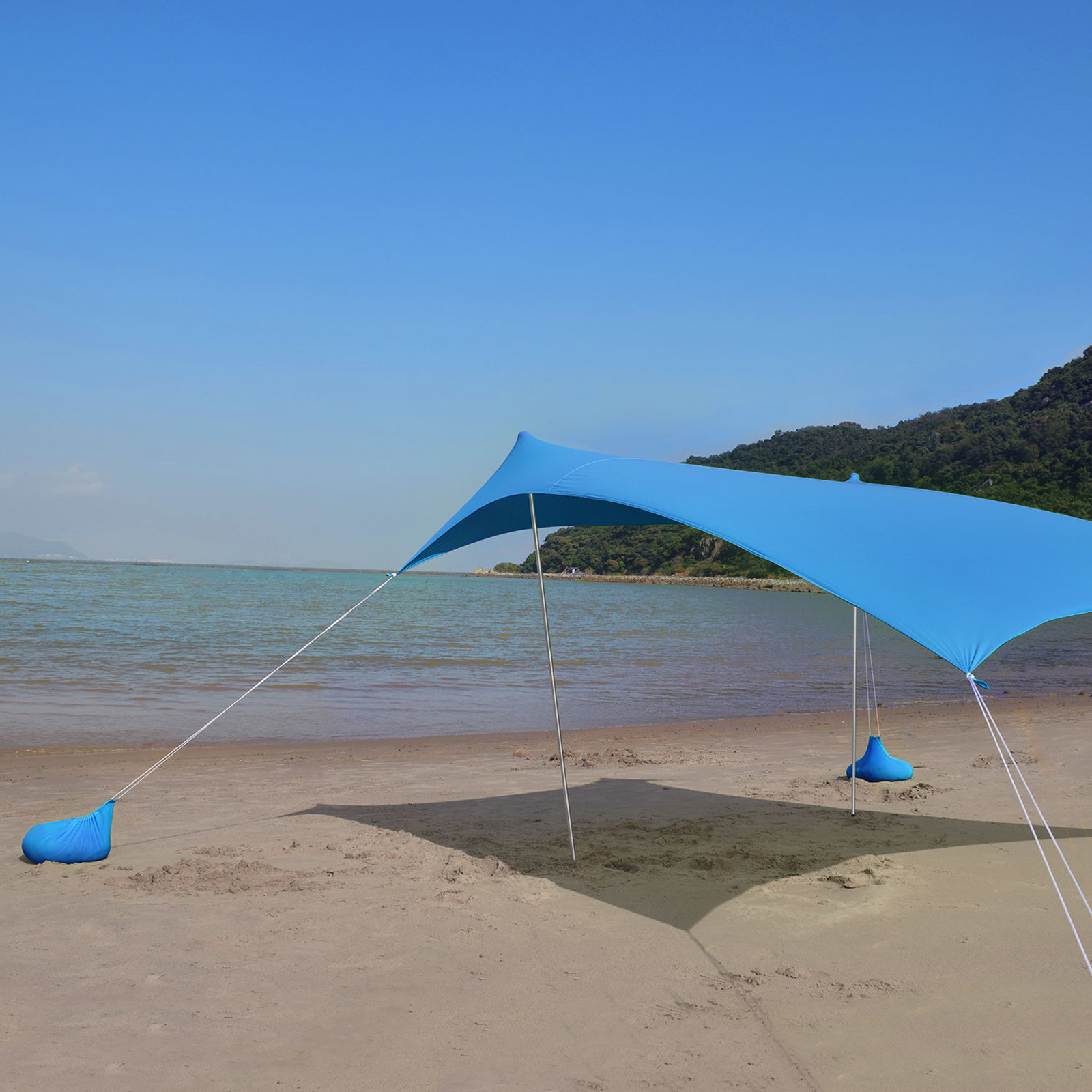 Быстрая и легкая установка на открытом воздухе-пляжный тент, солнцезащитный тент, легко устанавливается и поставляется с стойкими полюсами и якорем, которые позволяют использовать его над песчаными пляжами, густыми травяными зонами или даже в местах для кемпинга.