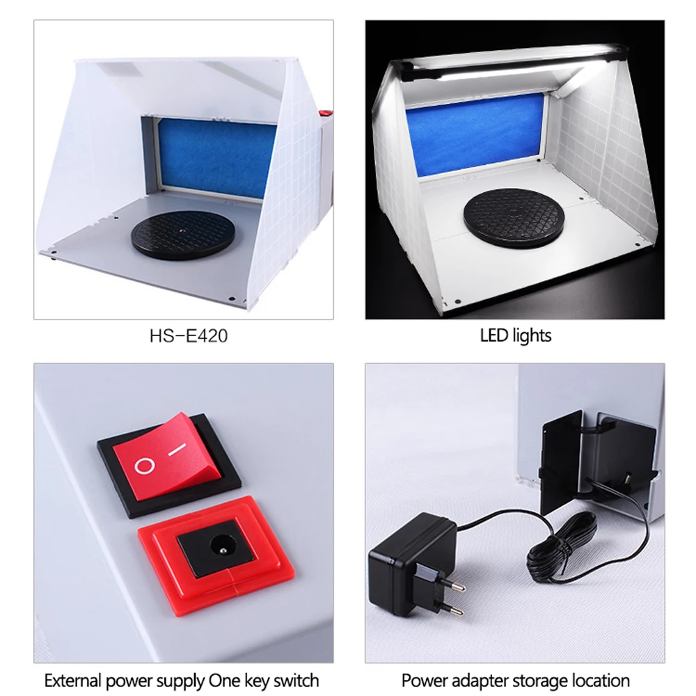 Этот профессиональный Аэрограф-распылитель, с мощным вентилятором и съемными стекловолоконными фильтровальные тампоны, идеально подходит для удаления и извлечения тумана, запаха, краски тумана и больших частиц при выполнении Аэрограф-распыления.