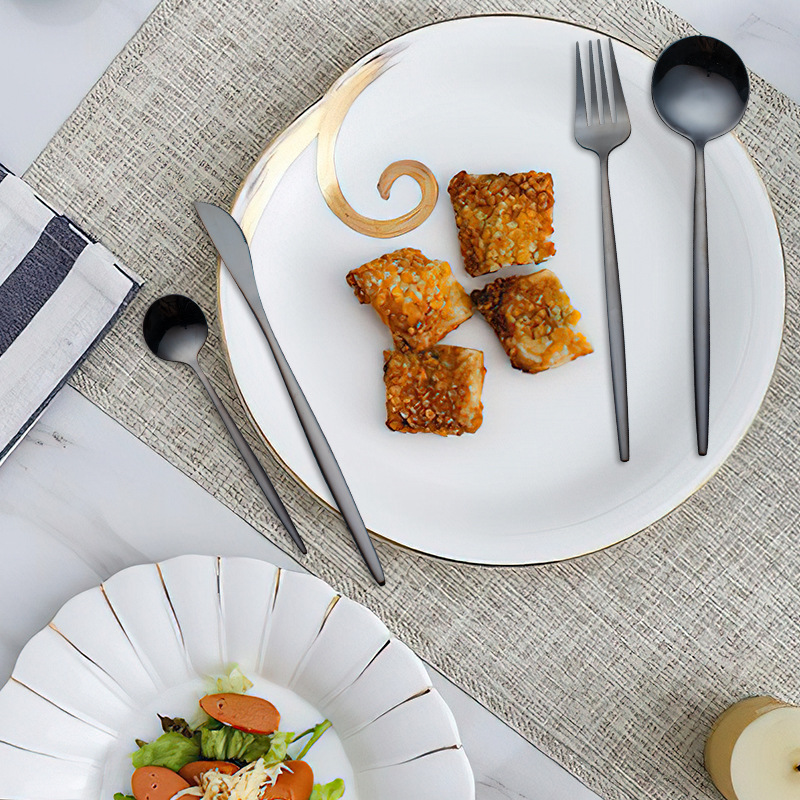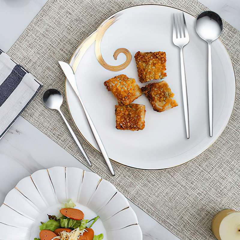 Упаковка: 1 набор из 24 шт набор столовых приборов посуда. (Столовый нож * 6/столовая ложка * 6/столовая вилка * 6/десертная ложка * 6)