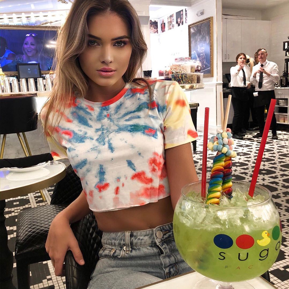 Womens fashion tie-dye cropped t-shirt --- This sexy exposed navel short sleeve tops flatters any figure with a regular slim fit effect and form flattering cut. Enjoy wearing fashionable tops without sacrificing comfort, fresh color to best suit your taste and style.