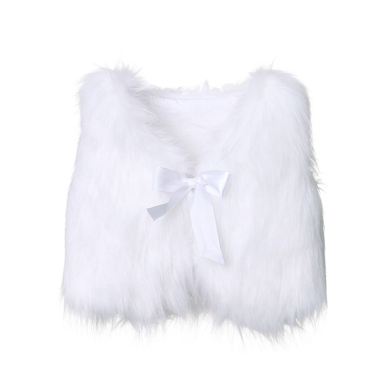 Жилет из искусственного меха для маленьких девочек однотонная куртка без рукавов с открытой передней частью Свободный кардиган на осень и зиму