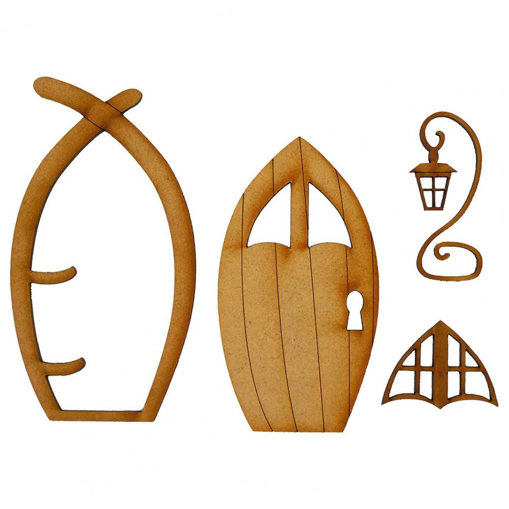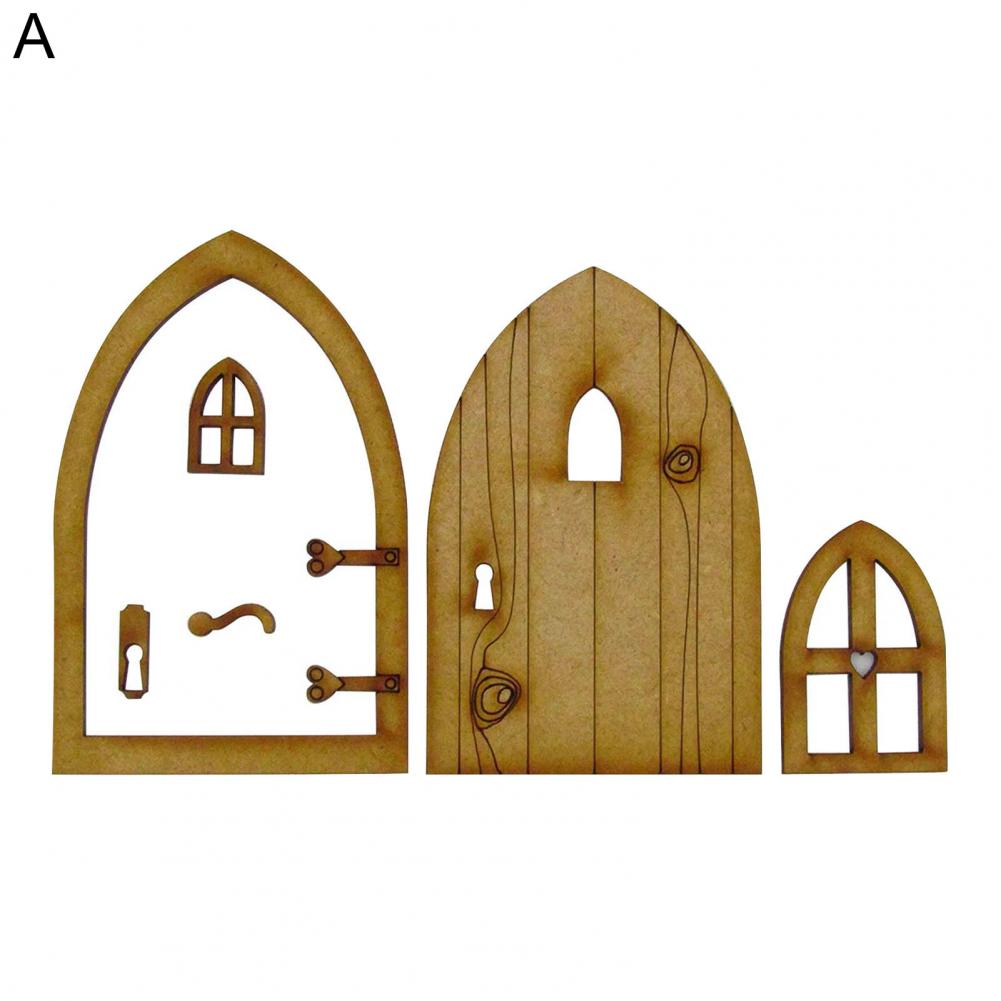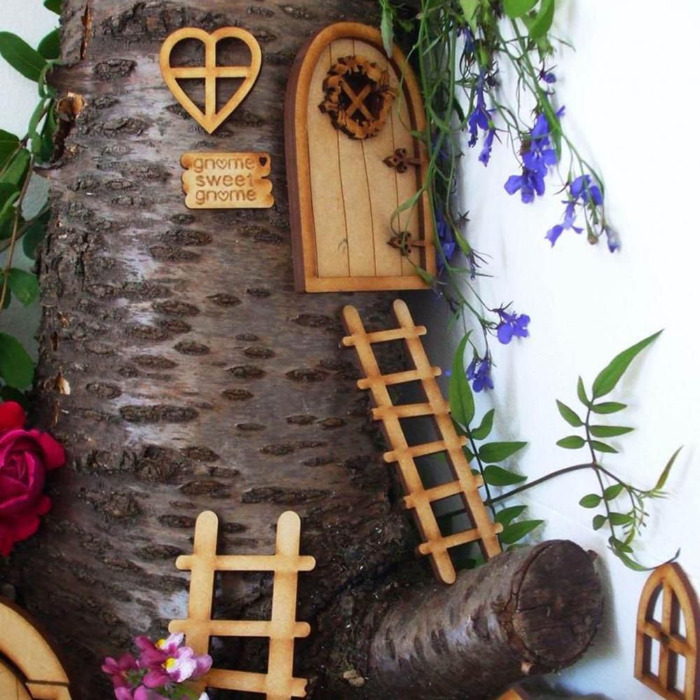 1 Set MIni Gnome Door Decorative Furniture Scene Props Wooden Artificial Mini Ladder Fence Fairy Door for Dollhouse