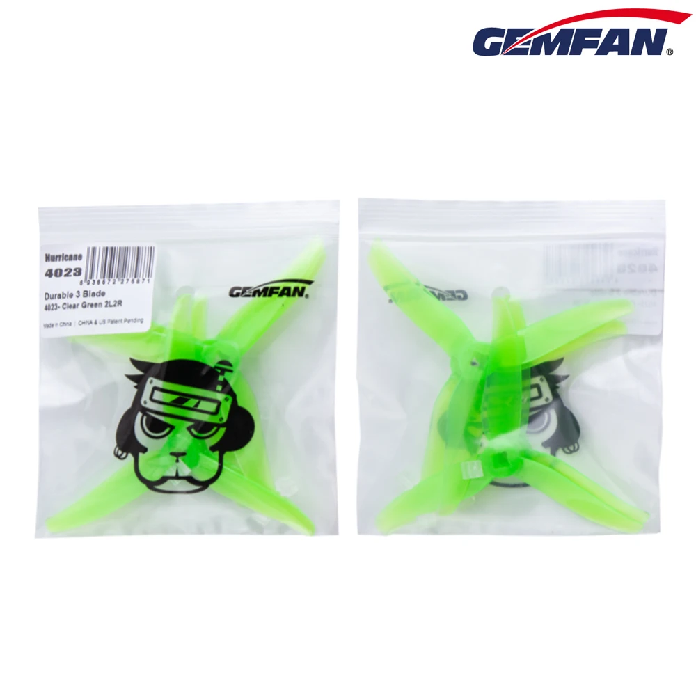 Specification: Brand Name: Gemfan Model: Hurricane 4023 Item Name: 4023 4x2.3 4 Inch 3-Blade Propeller Pitch: 2.3 Inch Material: PC Color: green / Red/ Gray/ green ( Optional) Weight: 1.9g Center Hole Inner Diameter: 5mm / 1.5mm Prop Disk Diameter: 102.1mm Center Thickness: 5.5mm Max. Prop Width: 10.9mm Recommend Motor: 1505 3600KV Features: - For Light weight 4’’ toothpick - Low pitch - Good control with high speed, awesome feeling when you fly it in race track even comparable to 5’’. - Good thrust for your micro and very responsive. - Good control, more precision and easy fly in the air - More durable, strength the root of blades to make it durable enough without losing performance